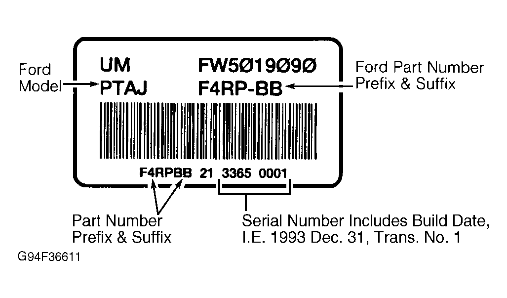 The CD4E automatic transmission is identified by identification tag located on rear of transaxle and bottom of main control assembly. See Fig 1 .