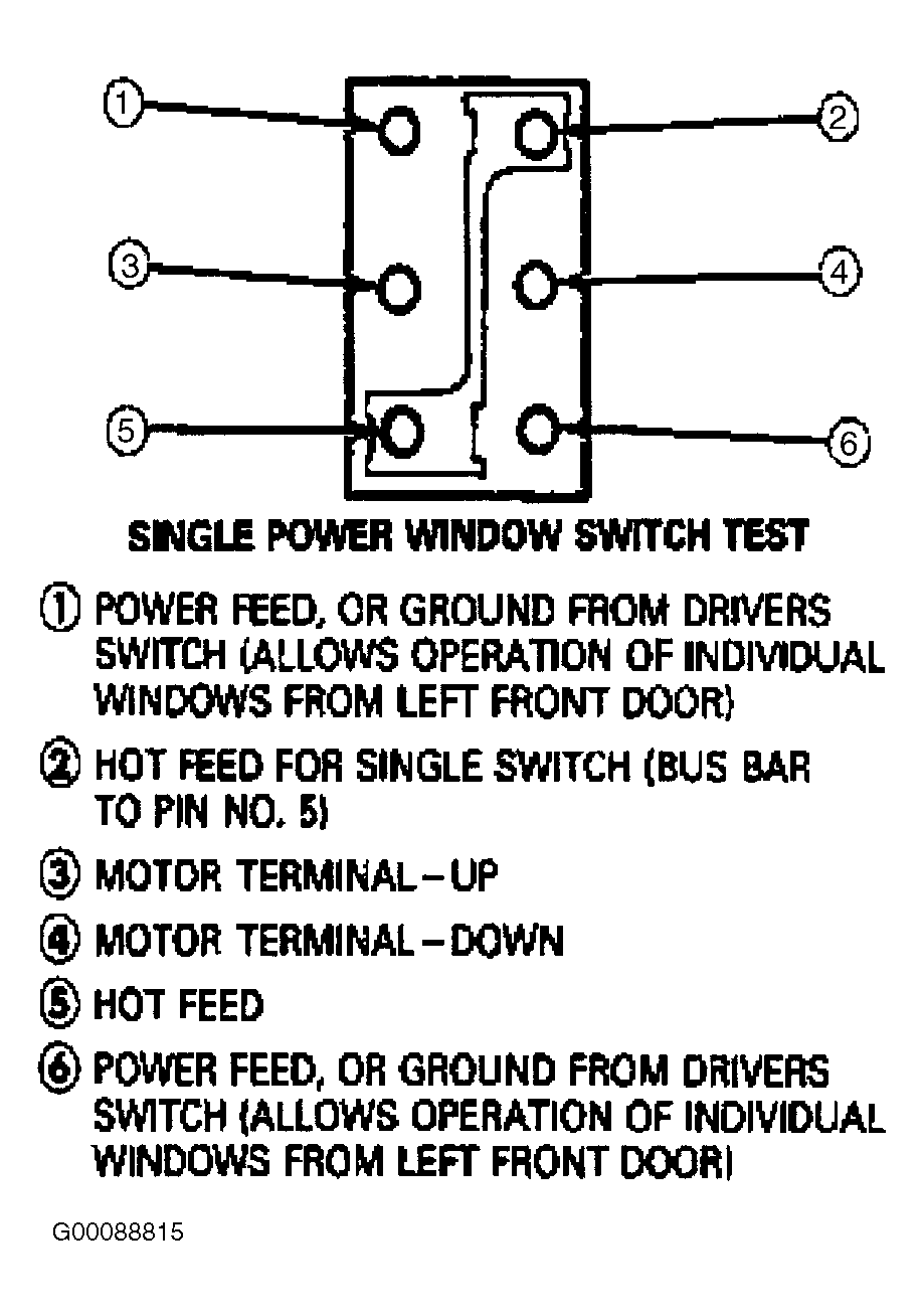 1. Use a self-powered test light or a Digital Volt-Ohmmeter to test the window regulator control switch.