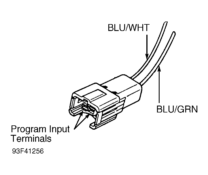 - Turn ignition to RUN or ACC position. Remove right quarter panel interior trim panel. Remove sub-woofer speaker (if equipped). Locate program connector. Using a jumper wire, momentarily short the terminals of the programming connector located in right rear quarter panel area. See Fig 1. All doors should lock then unlock to confirm programming mode has been entered.