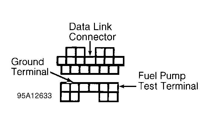 1. Release fuel pressure. See FUEL PRESSURE RELEASE. Install fuel pressure gauge. Connect a jumper wire between fuel pump test terminal at the Data Link Connector (DLC) and ground. See Fig 1 Turn ignition on, but DO NOT start engine. This activates the fuel pump.