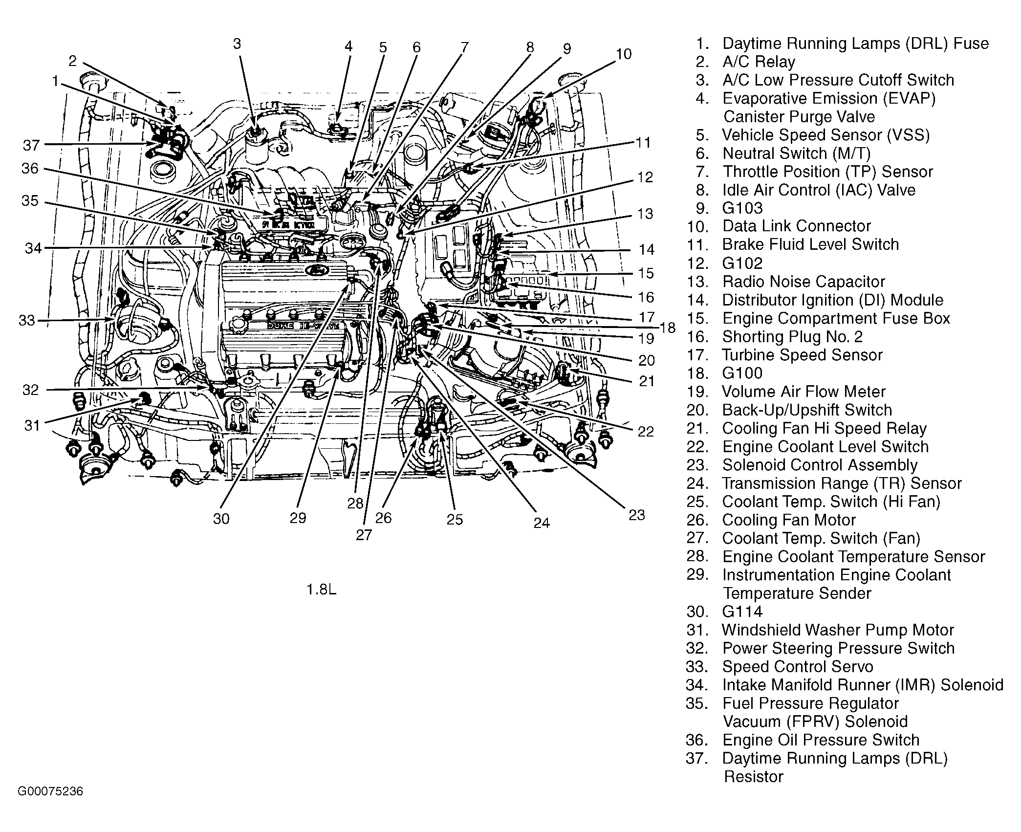 Distributor Ignition (DI) Module (1.8L) Left side of engine compartment, above wheelwell. See Figure .