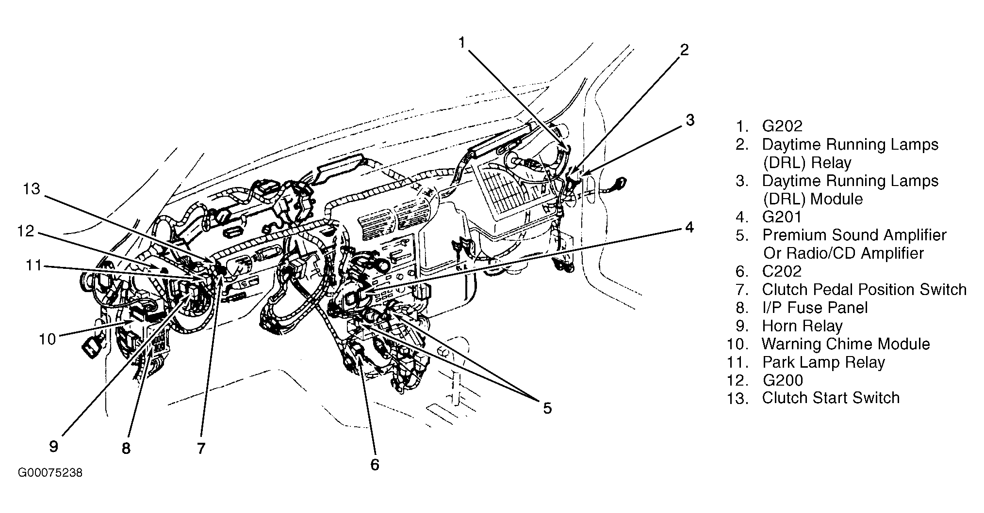 Daytime Running Lamps (DRL) Module Behind right side of dash, top of kick panel. See Figure .