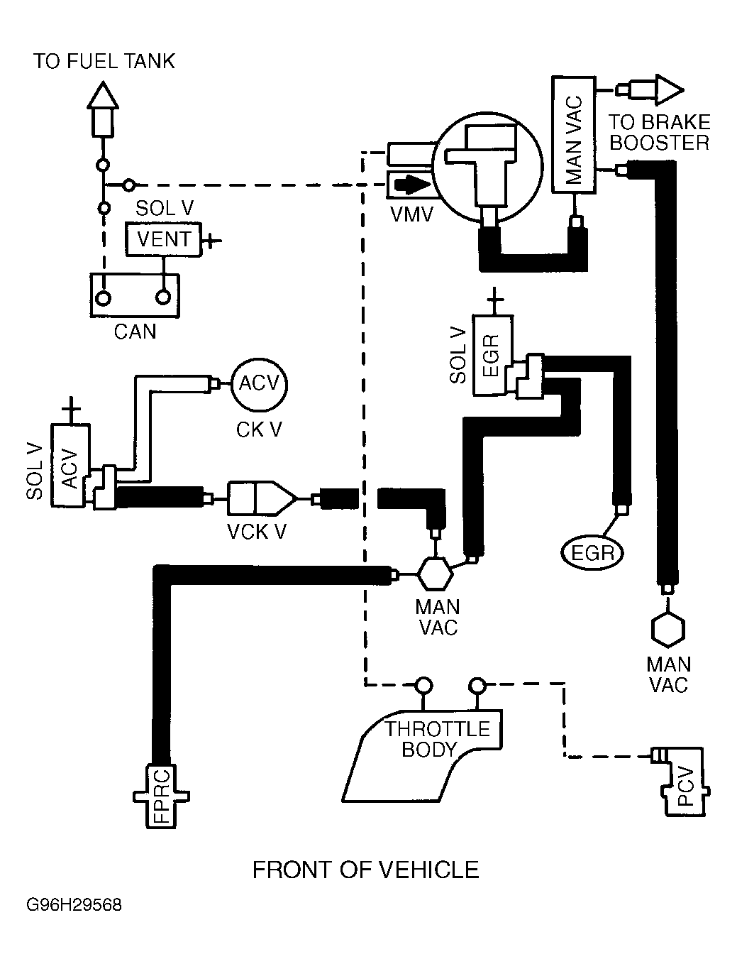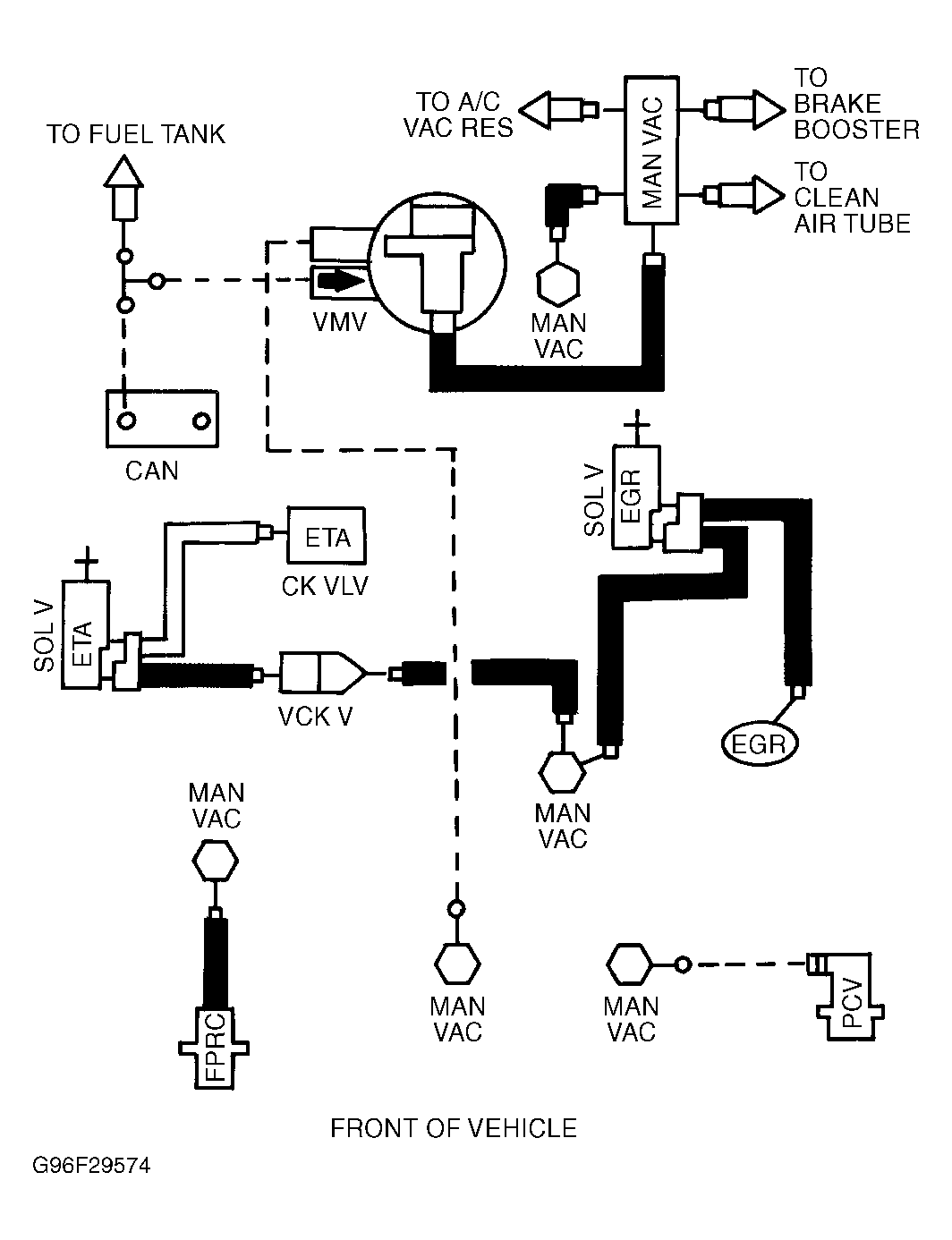 Vacuum diagrams are identified by calibration code. Use the Emission Calibration Label to identify calibration. Calibration label is attached to left door or left door pillar. See Fig 1 . Use calibration code to select vacuum diagram.