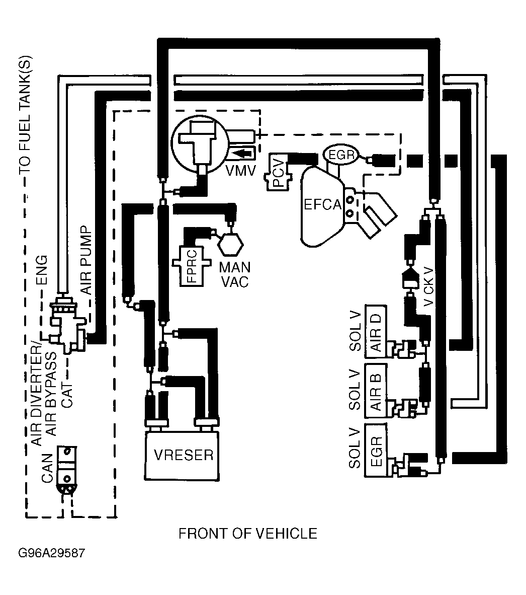 Vacuum diagrams are identified by calibration code. Use the Emission Calibration Label to identify calibration. Calibration label is attached to left door or left door pillar. See Fig 1 . Use calibration code to select vacuum diagram.