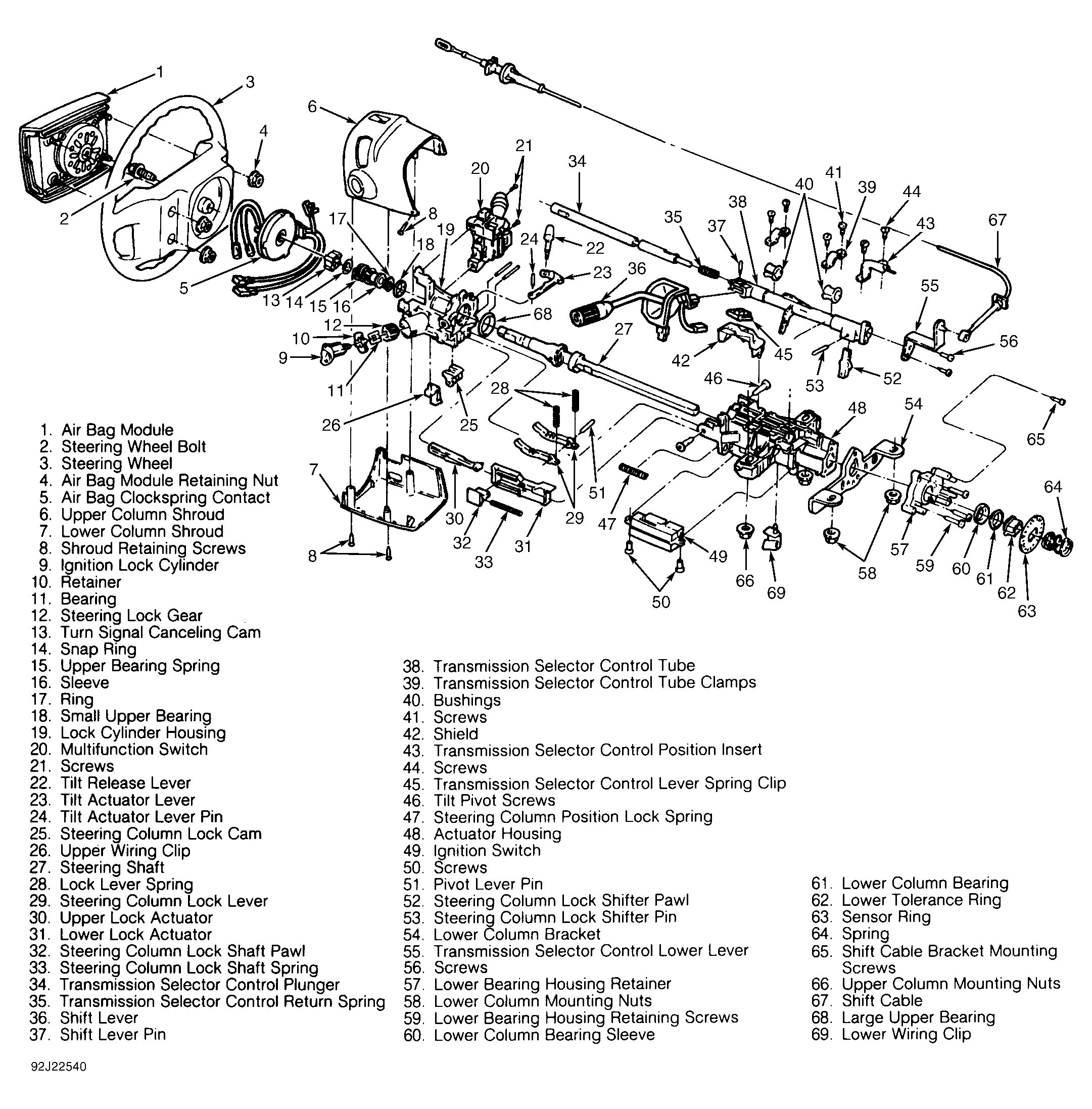 Fig 1: Exploded View Of Steering Column With Air Bag