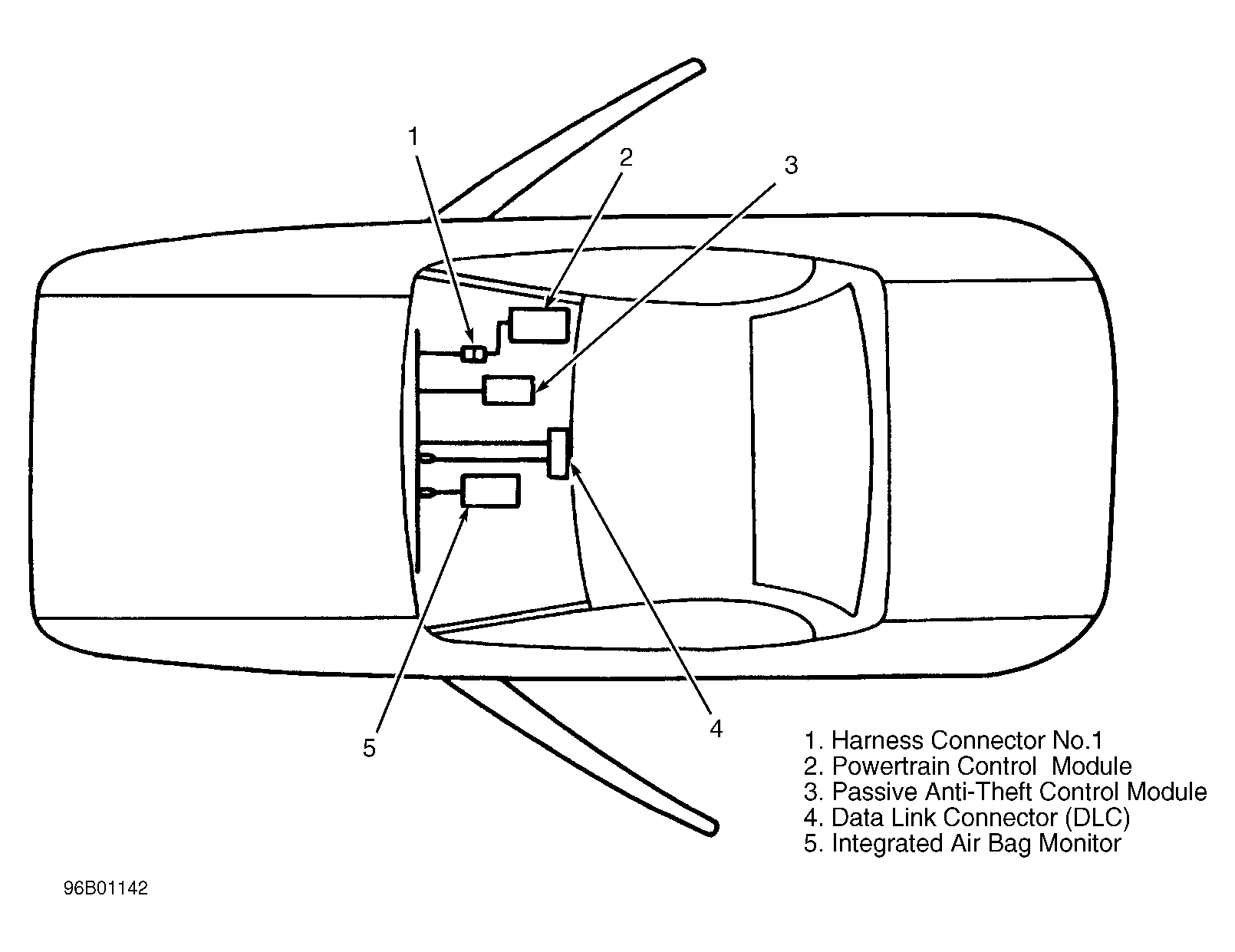 The data bus lines are routed throughout the vehicle to each module as a common "bus" or party line where all modules share information. See Fig 1 . Information on data lines is transmitted in a pulse width type code. Any module can transmit or receive information equally, there is no "master" module. If more than one module attempts to send information at the same time, the message with highest priority is given network access first. This addressing scheme is known as Standard Corporate Protocol (SCP).