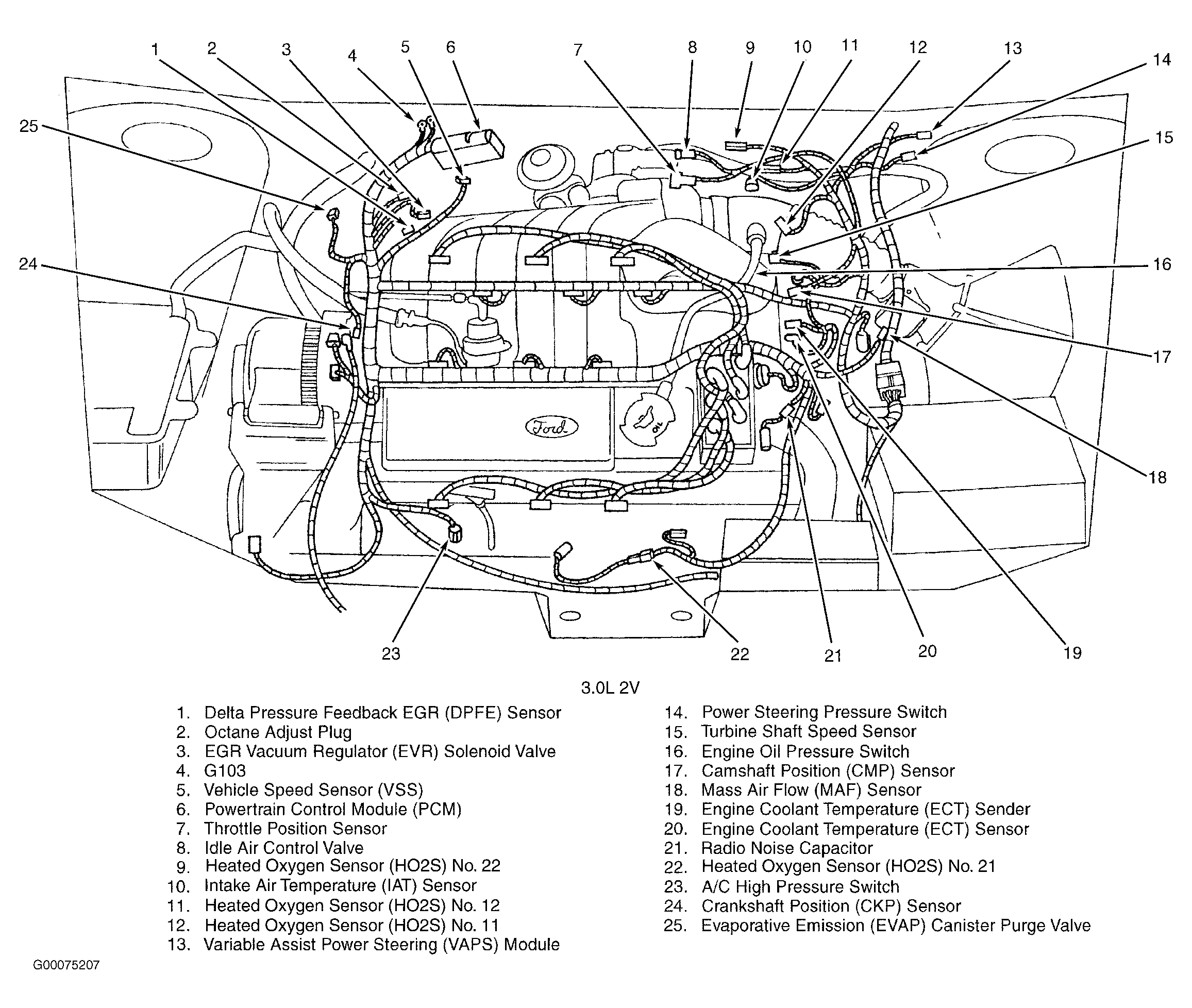 Variable Assist Power Steering (VAPS) Module (3.0L 2V) Left rear of engine compartment, behind transmission fill tube. See Figure .