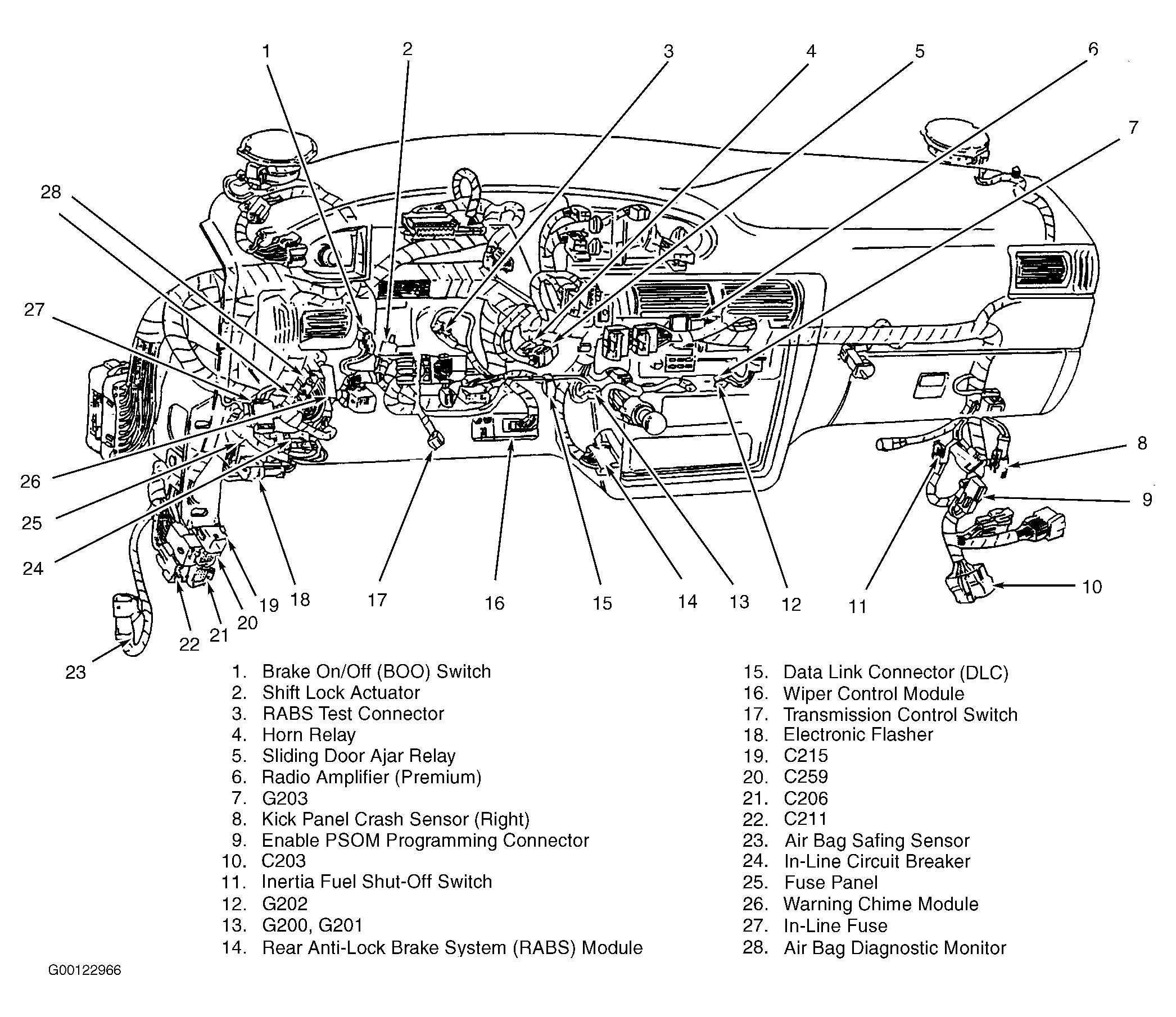 | Fuse Panel | Behind left side of dash. See Figure . |