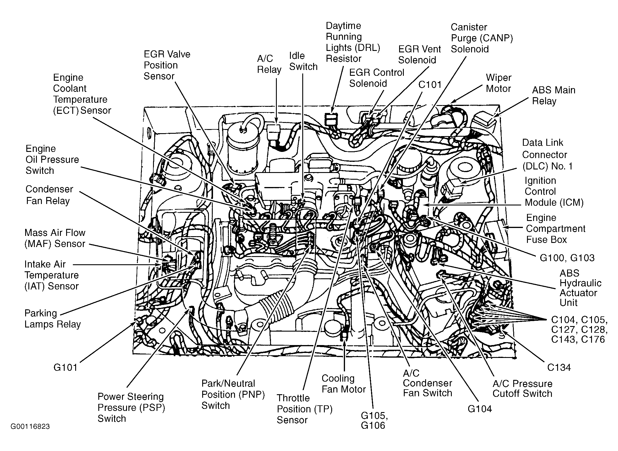 | Ignition Control Module (ICM) | Left side of engine compartment. See Figure . |