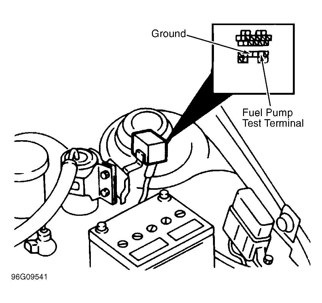 - Release fuel pressure. See FUEL PRESSURE RELEASE . Install fuel pressure gauge. See Fig 1 . Connect a jumper wire between fuel pump test terminal at the Data Link Connector (DLC) and ground. See Fig 2 . Turn ignition on, but DO NOT start engine. This activates the fuel pump.