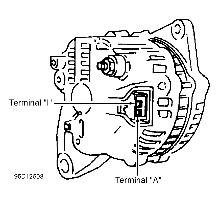2. With engine running at 2000 RPM, check voltage between ground and terminals "B+" and "A". See Figure and Figure . If voltage reading at terminal "A" is less than terminal "B+" by .5 volt or more, check "A" terminal circuit for open or excessive resistance. If voltage reading at terminals "B+" and "A" both exceed 15.4 volts, replace internal regulator or generator assembly.