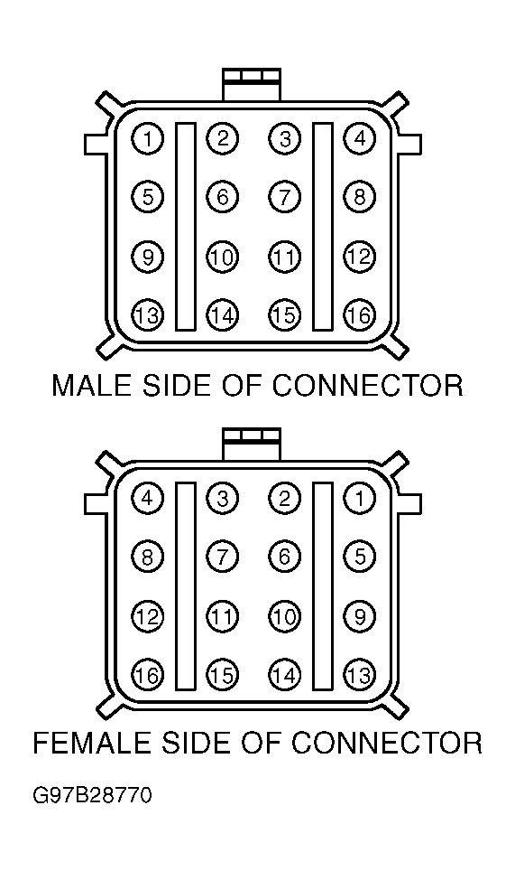 17. Using ohmmeter, check resistance between terminal No. 2 (Tan/Orange wire) on female side of harness connector C127 and terminal No. 16 (Tan/Orange wire) on connector C1032 for PCM. See Fig 2 and Fig 3 .