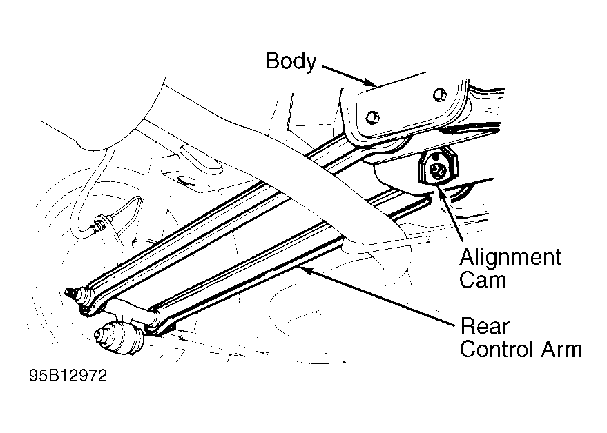 Loosen front lower control arm-to-body retaining bolt. Rotate adjusting cam to obtain correct toe-in. While holding adjusting cam, tighten rear adjusting cam attaching nut. See Fig 1 .