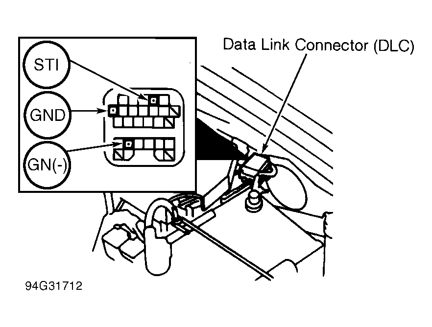 - Connect timing light to No. 1 spark plug wire. Use jumper wire to connect Data Link Connector (DLC) STI terminal to GND terminal. See Fig 1