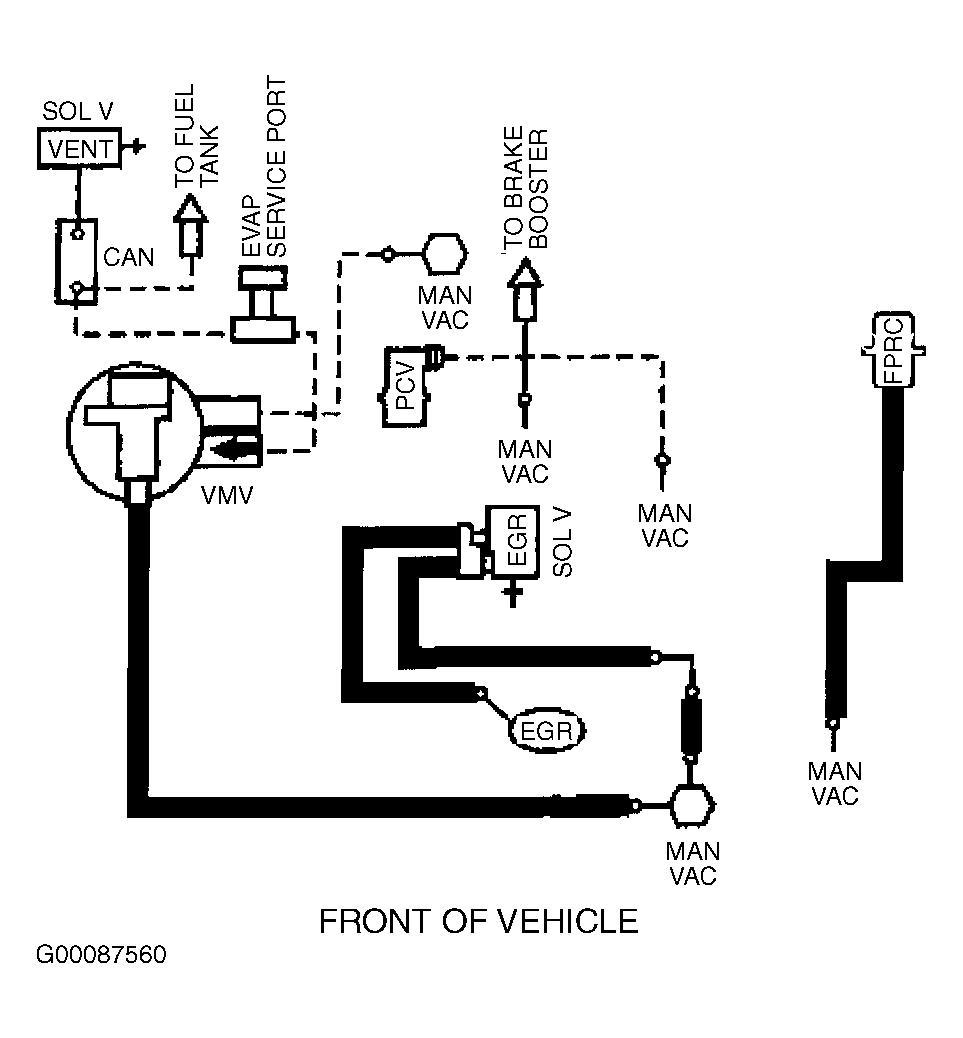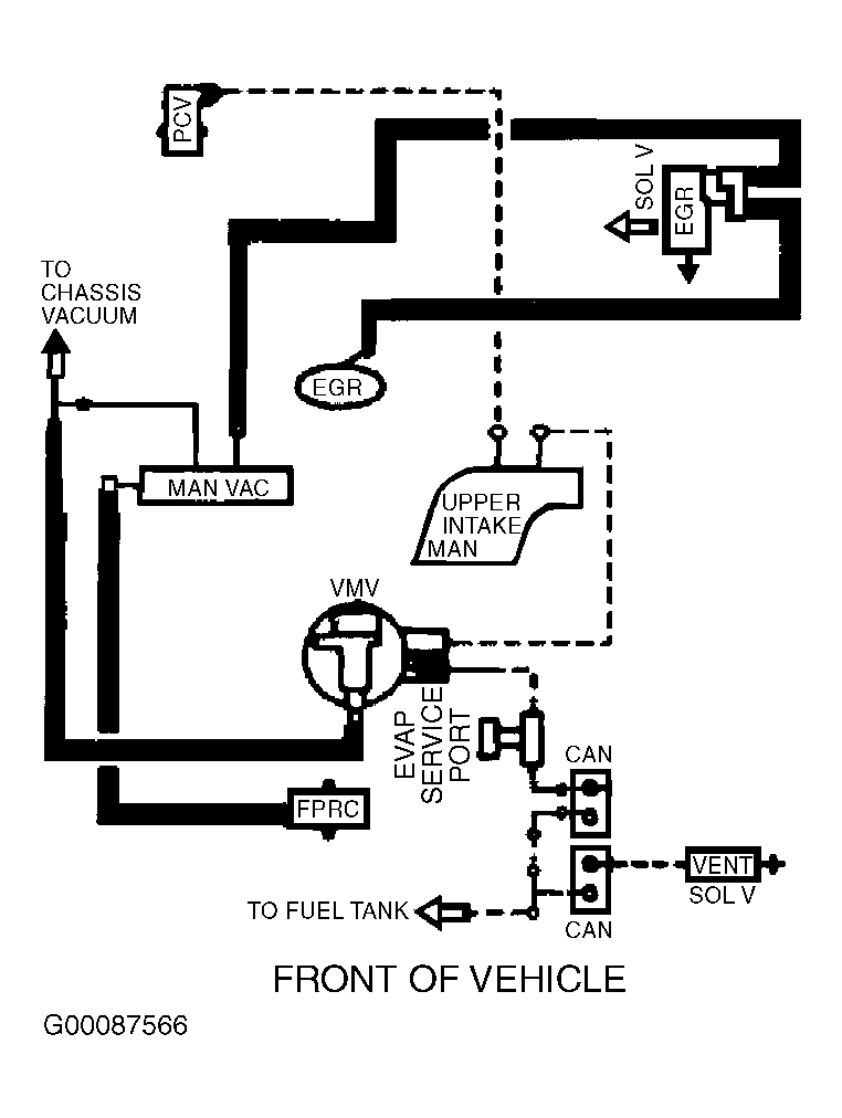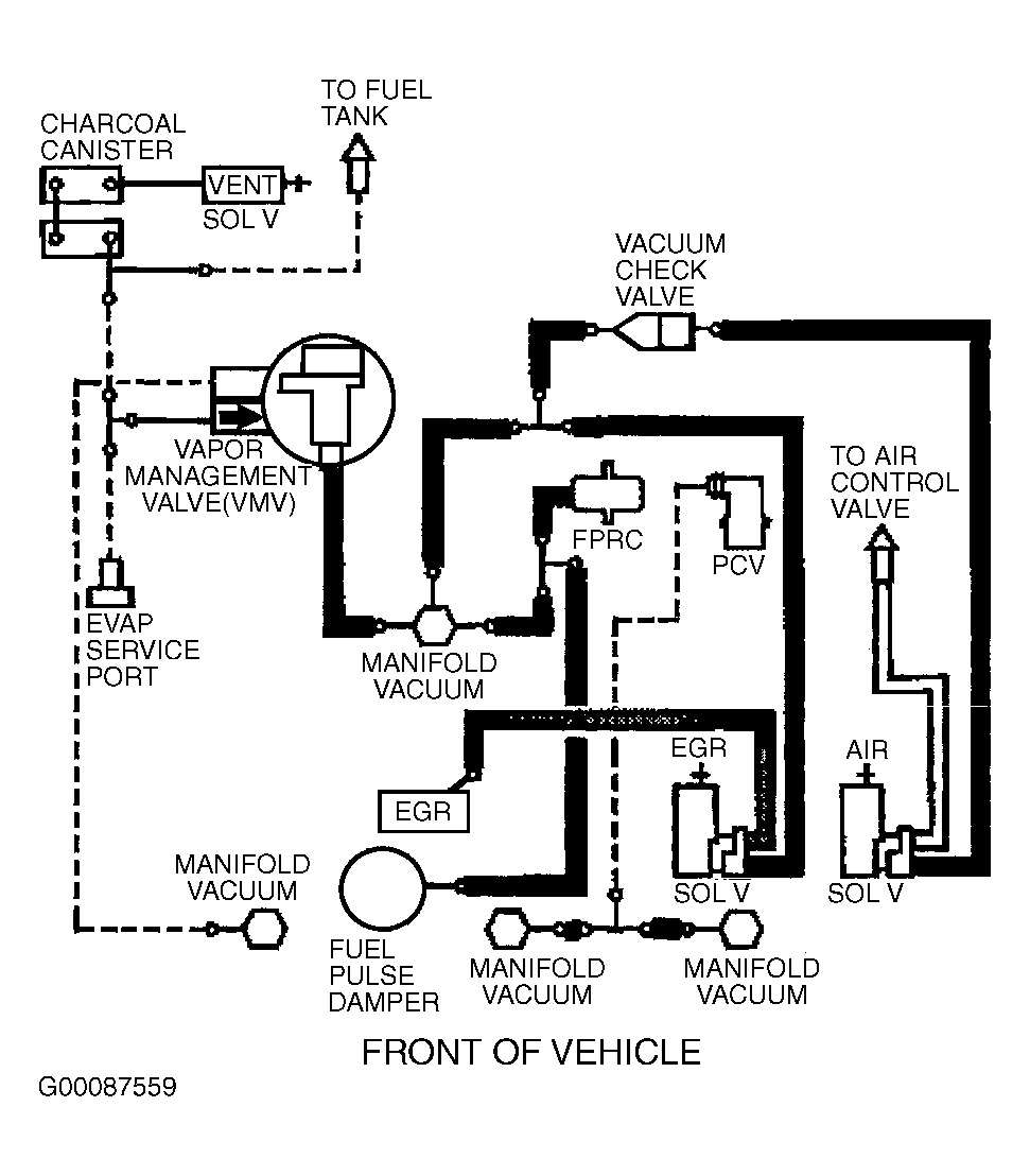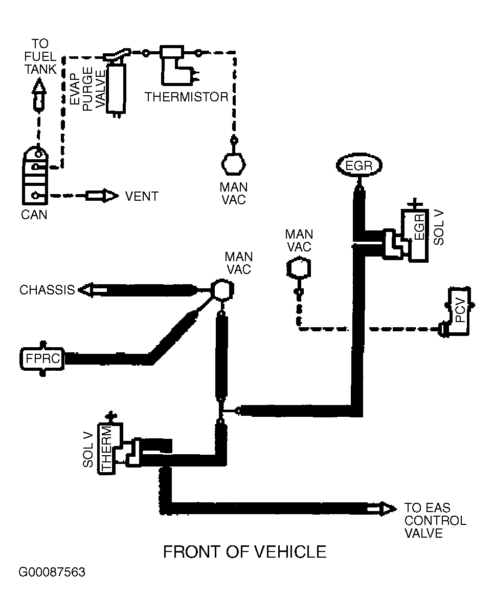 Fig 6: Vacuum Diagram (Contour & Mystique - 2.5L - California CARB Tier 1, Canada & 49-States - Except Calibration Nos. 9-LCA-AAD (MJJ3) - Code DZU & 9-LCM-AAC (KKT2) - Code DZU)