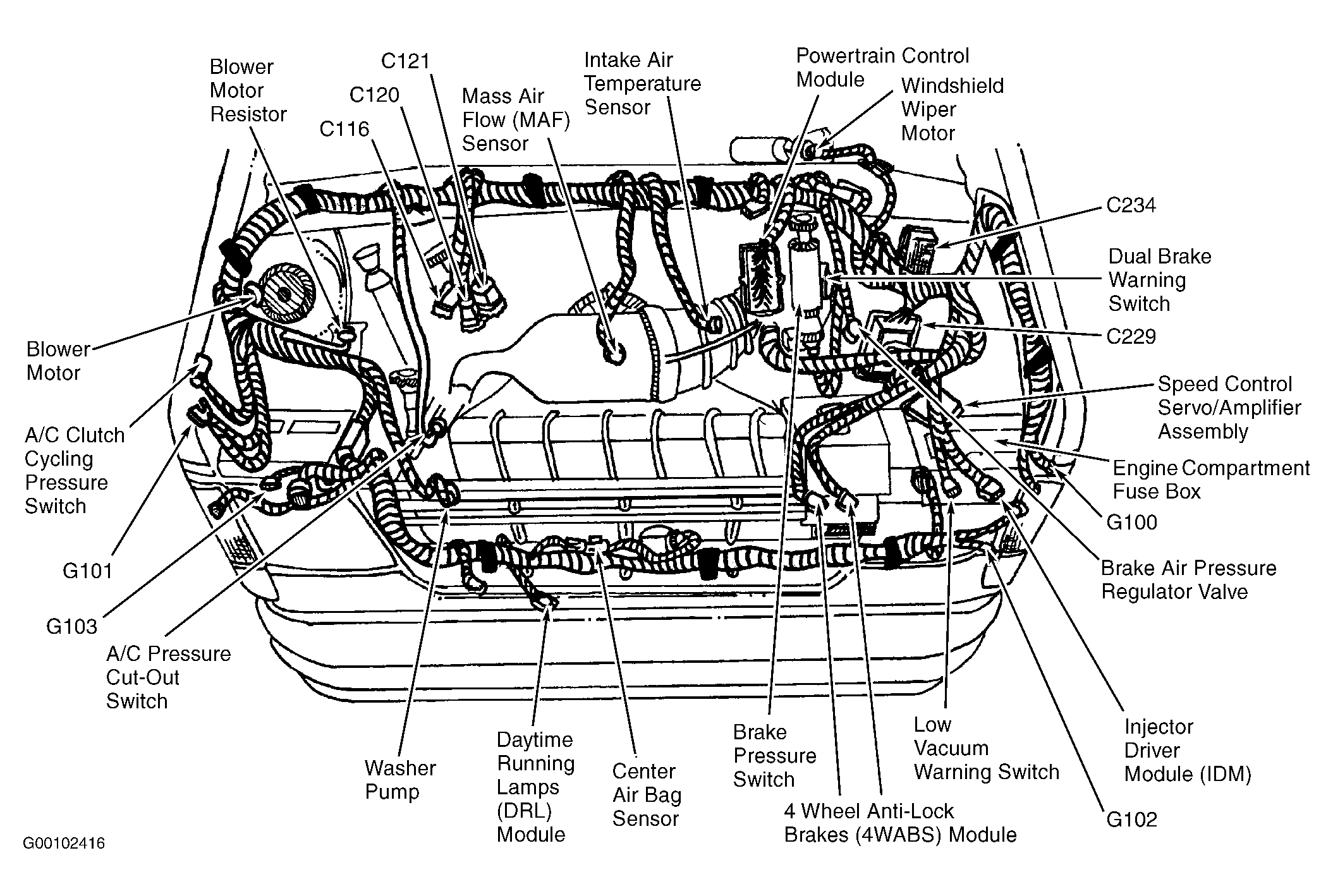 | Powertrain Control Module | In left rear of engine compartment, near brake master cylinder. See Figure . |