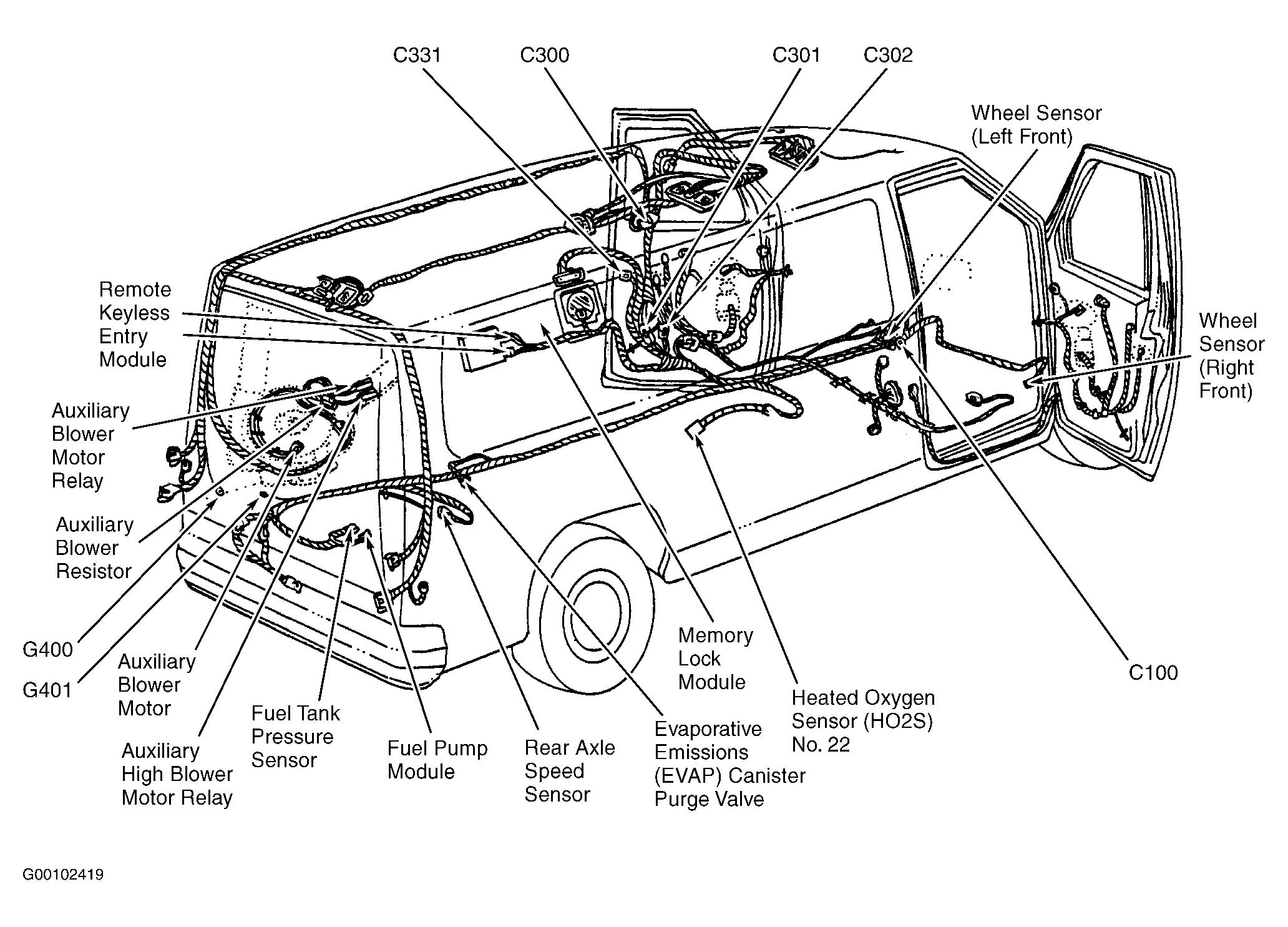 | Fuel Pump Module | Under vehicle, in fuel tank. See Figure . |