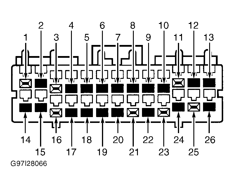 - Check Blue/Black Wire For Voltage - Disconnect RAP module Gray, 26-pin connector C405 (located in luggage compartment/trunk, behind right trim panel on ZX2 coupe and sedan, or located behind left rear quarter trim panel on wagon). Using a voltmeter, check voltage between ground and RAP module 26-pin connector C405, terminal No. 25 (Blue/Black wire). See Figure . If voltage is more than 10 volts, go to MODULE COMMUNICATIONS NETWORK article to continue diagnosis. If voltage is 10 volts or less, repair Blue/Black wire between instrument panel fuse block and RAP module. Retest system operation.