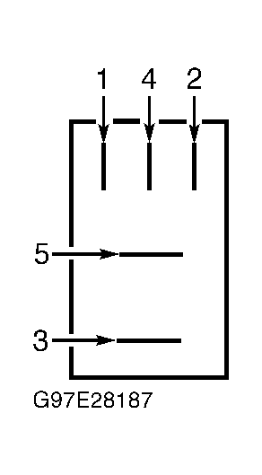Remove one-touch down relay (located in relay module, on left side of glove box). Using an ohmmeter, check continuity between relay terminals No. 1 and 2. See Fig 1. Continuity should always exist. Check continuity between relay terminals No. 3 and 4. Continuity should exist. Apply battery voltage and ground between relay terminals No. 1 and 2. Continuity should now exist between relay terminals No. 3 and 5. Replace relay if it does not test as specified. See Fig 1.