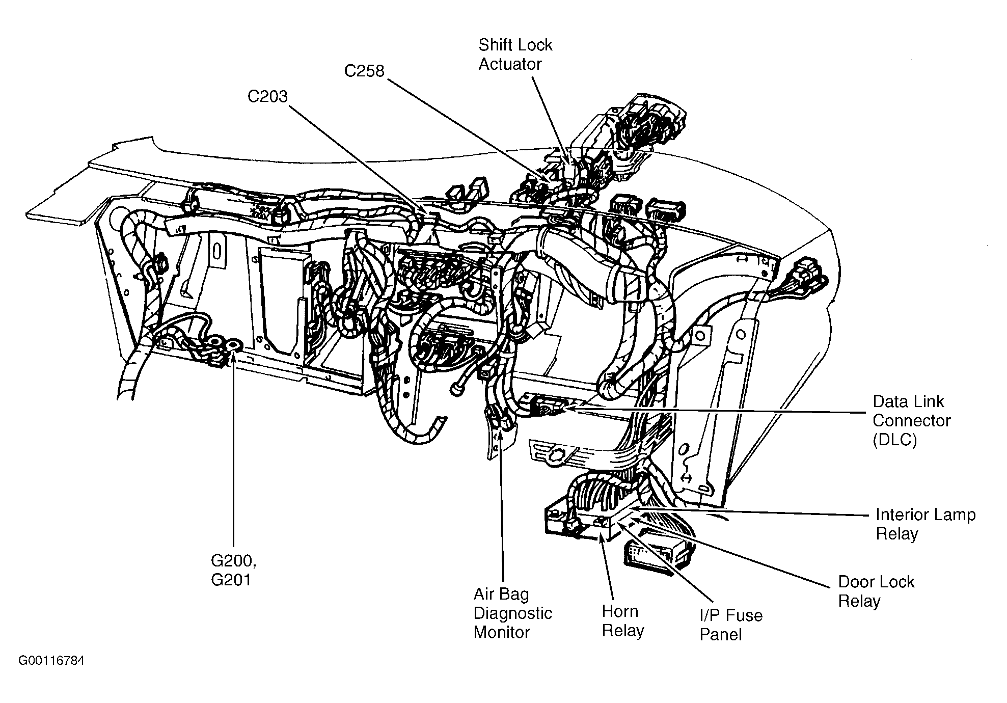 | Air Bag Diagnostic Monitor | Behind left side of dash. See Figure. |