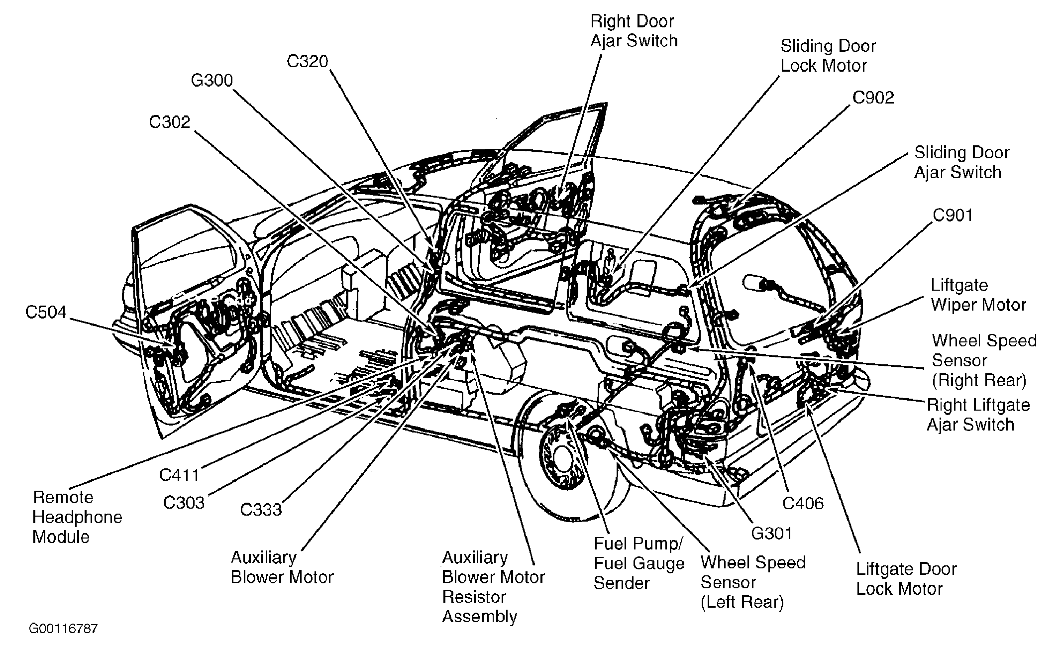 | Remote Headphone Module | Behind panel, left of rear seat. See Figure. |