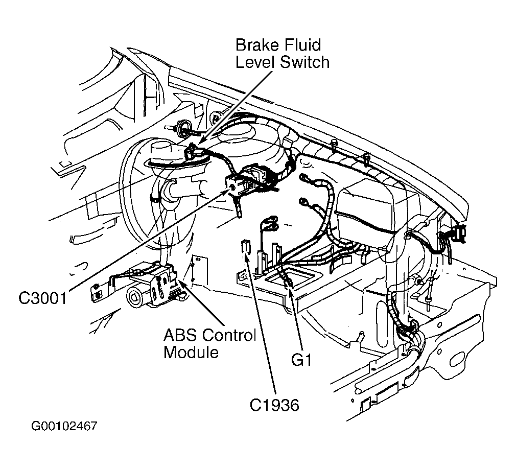 ABS Control Module In left rear of engine compartment, near brake booster. See Figure .