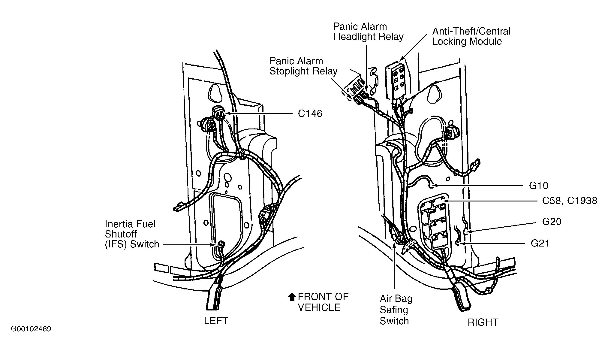 Anti-Theft/Central Locking Module On center of right "A" pillar. See Figure .