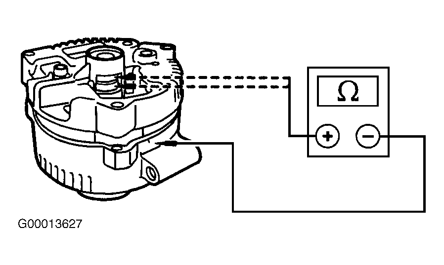 . If resistance is 200 ohms or greater, replace voltage regulator. If resistance is less than 200 ohms, clean accumulated grease or dirt from around slip rings and recheck resistance. If resistance is still less than 200 ohms, replace generator. See GENERATOR