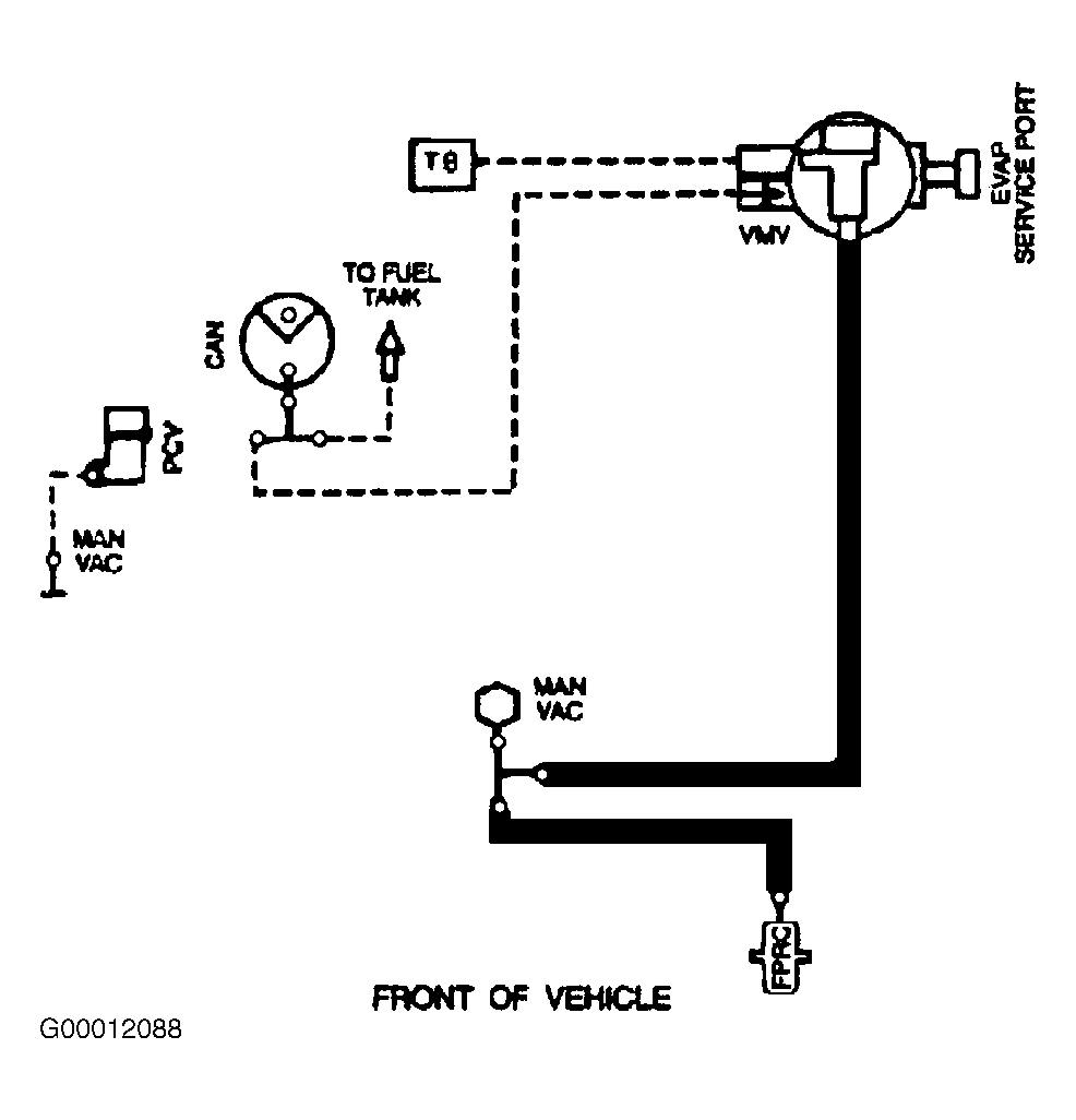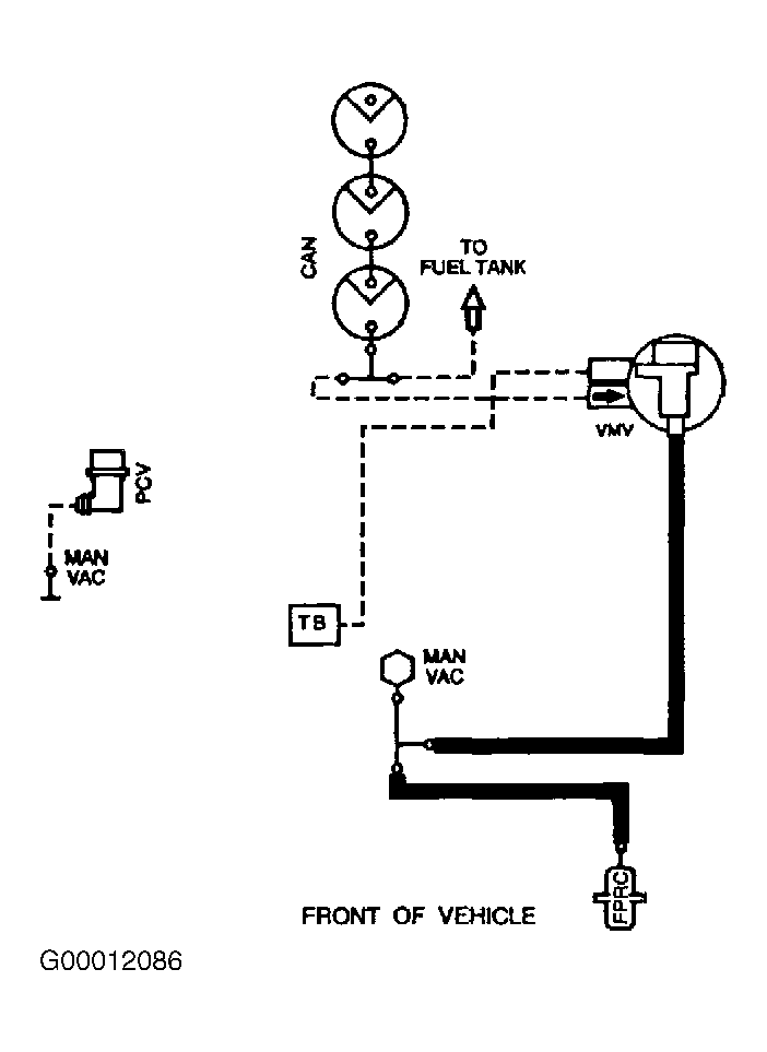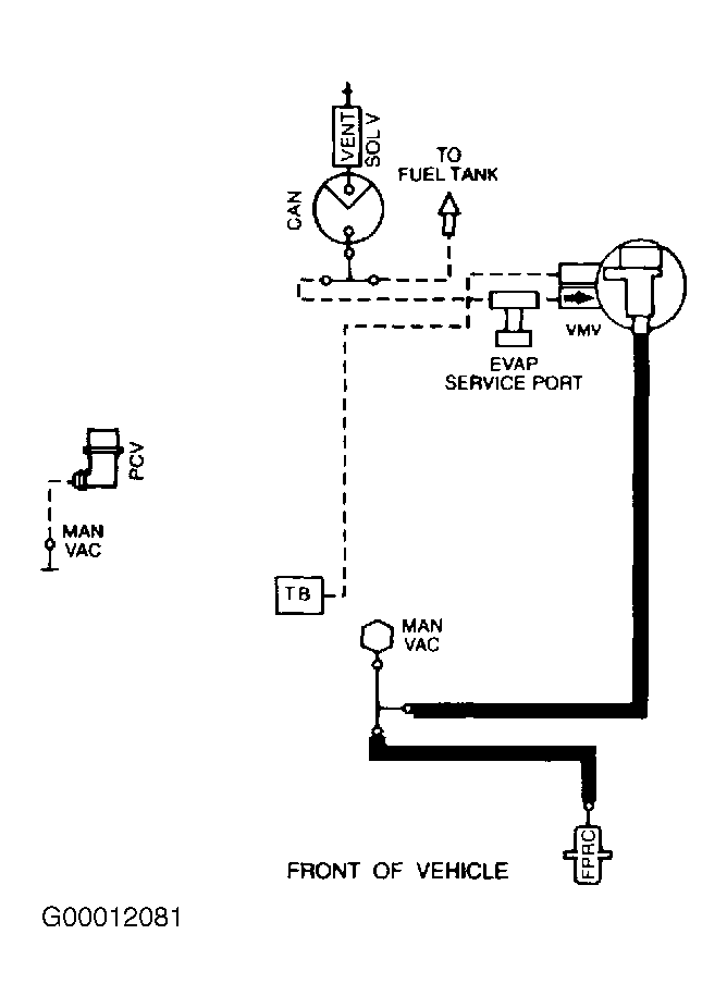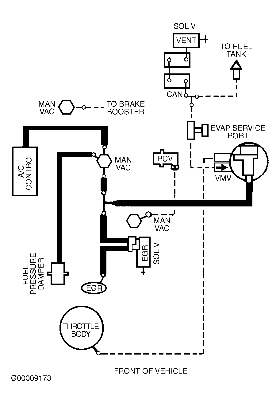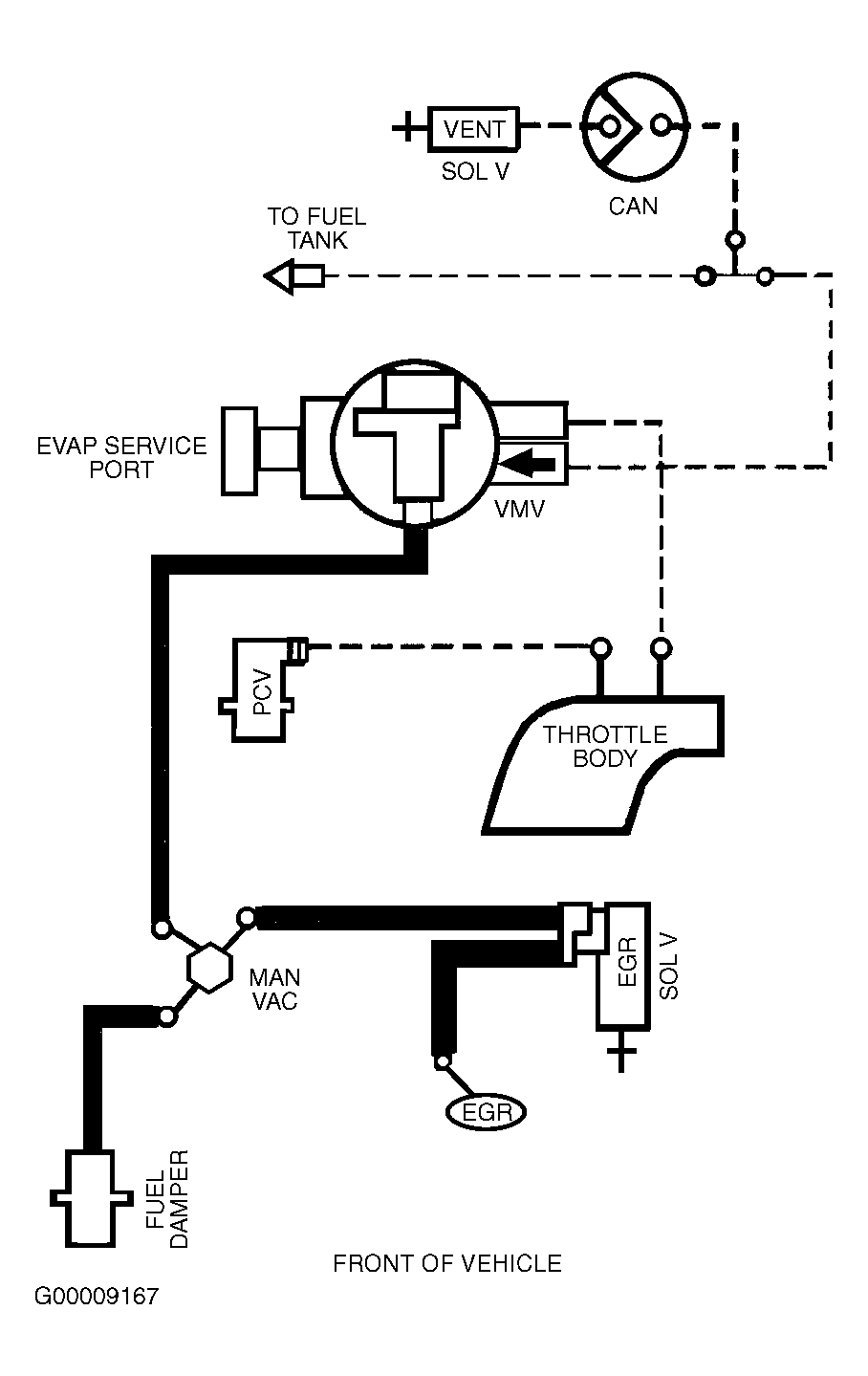 This article contains underhood schematics of vacuum hose routing. Use these vacuum diagrams during the visual inspection performed in the appropriate BASIC DIAGNOSTIC PROCEDURES article. This will assist in identifying improperly routed vacuum hoses, which may cause driveability and/or computer-indicated malfunctions. To properly identify calibration code, catch code must be identified. The catch code is the 4 alpha/numeric characters located in parenthesis at the end of the calibration code. Example; 9-EQA-BBD 9 (BAX3). The BAX3 is the catch code. The catch code tag is attached to the powertrain control module connector. See POWERTRAIN CONTROL MODULE LOCATION table. On some models, the catch code tag may also be located on the "A" pillar or inner fender.