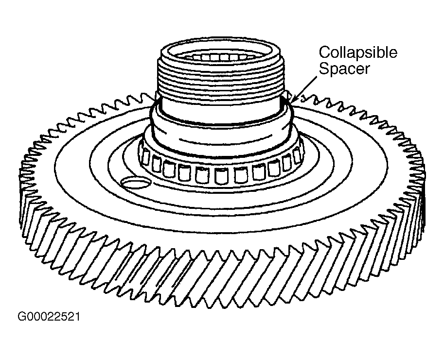 - While holding final drive input gear bearing, rotate transaxle on stand 180 degrees. Remove final drive input gear bearing by lightly tapping on end of final drive input gear and remove final drive input gear. Remove collapsible spacer. See Fig 4