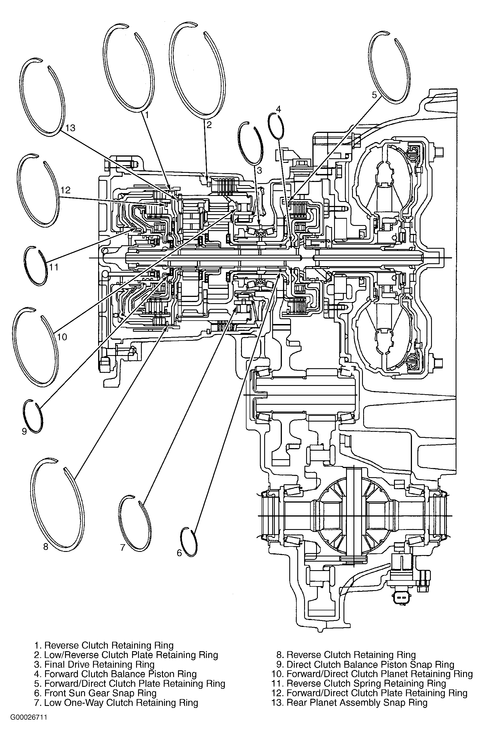 . For snap ring and retaining ring locations, see Fig 10