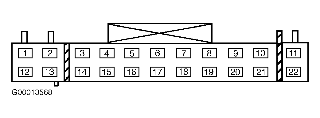 - Measure voltage between ground and RAP module 22-pin connector C404 terminal No. 12 (Blue/Red wire). See Figure . If is more than 10 volts exists, go to next step. If 10 volts or less exists, repair Blue/Red wire between central junction box and RAP module. Retest system operation.
