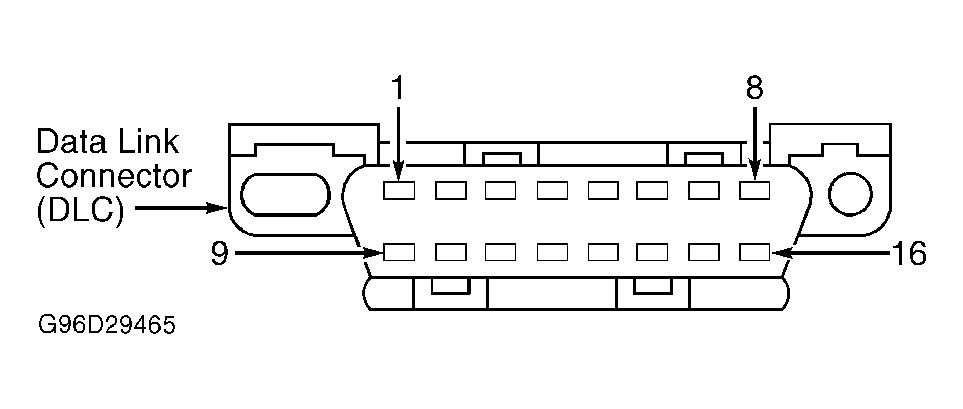 5. Measure voltage between ground and DLC terminal No. 16 (Light Green/Red wire). See Figure. If voltage is more than 10 volts, go to next step. If voltage is 10 volts or less, repair open in Light Green/Red wire between CJB and DLC. Retest system operation.