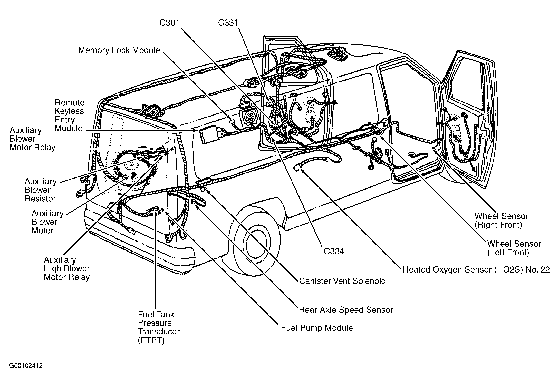 | Fuel Pump Module | Under vehicle, in fuel tank. See Figure. |