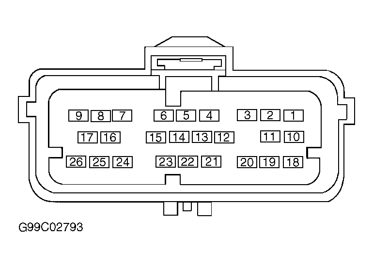 1. Turn ignition switch to LOCK position. Deactivate air bag system. See appropriate AIR BAG RESTRAINT SYSTEMS article. Disconnect Restraint Control Module (RCM) 26-pin harness connector C232. See Figure. Inspect RCM connector for physical damage, bent terminals or corrosion. If connector is okay, go to next step. If connector is damaged, repair connector as necessary and recheck system operation.