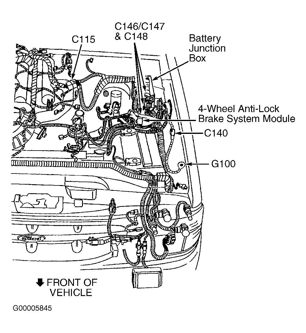 - Turn ignition off. Reconnect bulkhead connector C147. Disconnect Gray bulkhead 42-pin connector C115. Connector is located at left rear of corner engine compartment, right of brake booster. Turn ignition on. Measure voltage between the following DLC terminals: