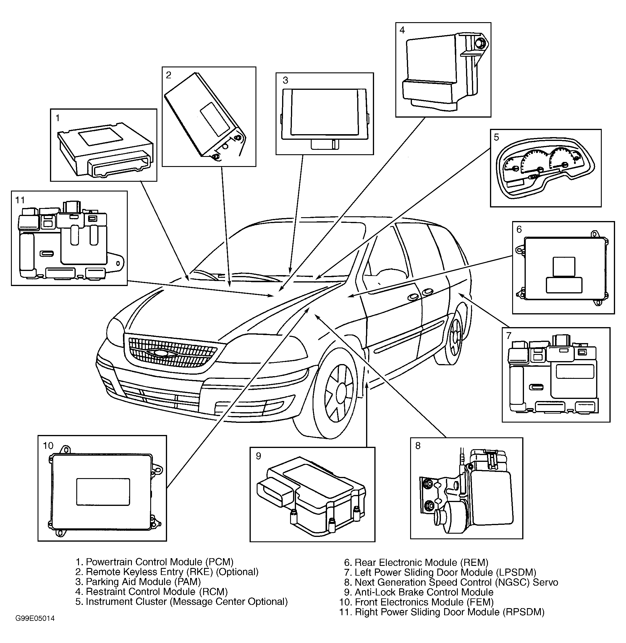 Home >> Ford >> 2001 >> Windstar Base >> Repair and Diagnosis >> External Pages >> Different car >> Section 5 (Module Communications Network System) >> Component Locations