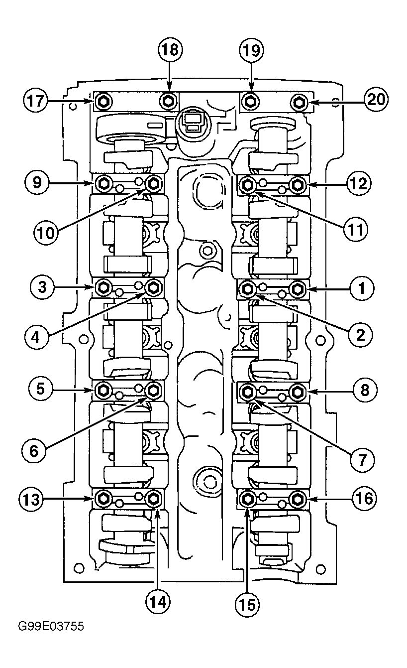 Camshaft Bearing Cap Bolt (1) 10-13 (13-18)