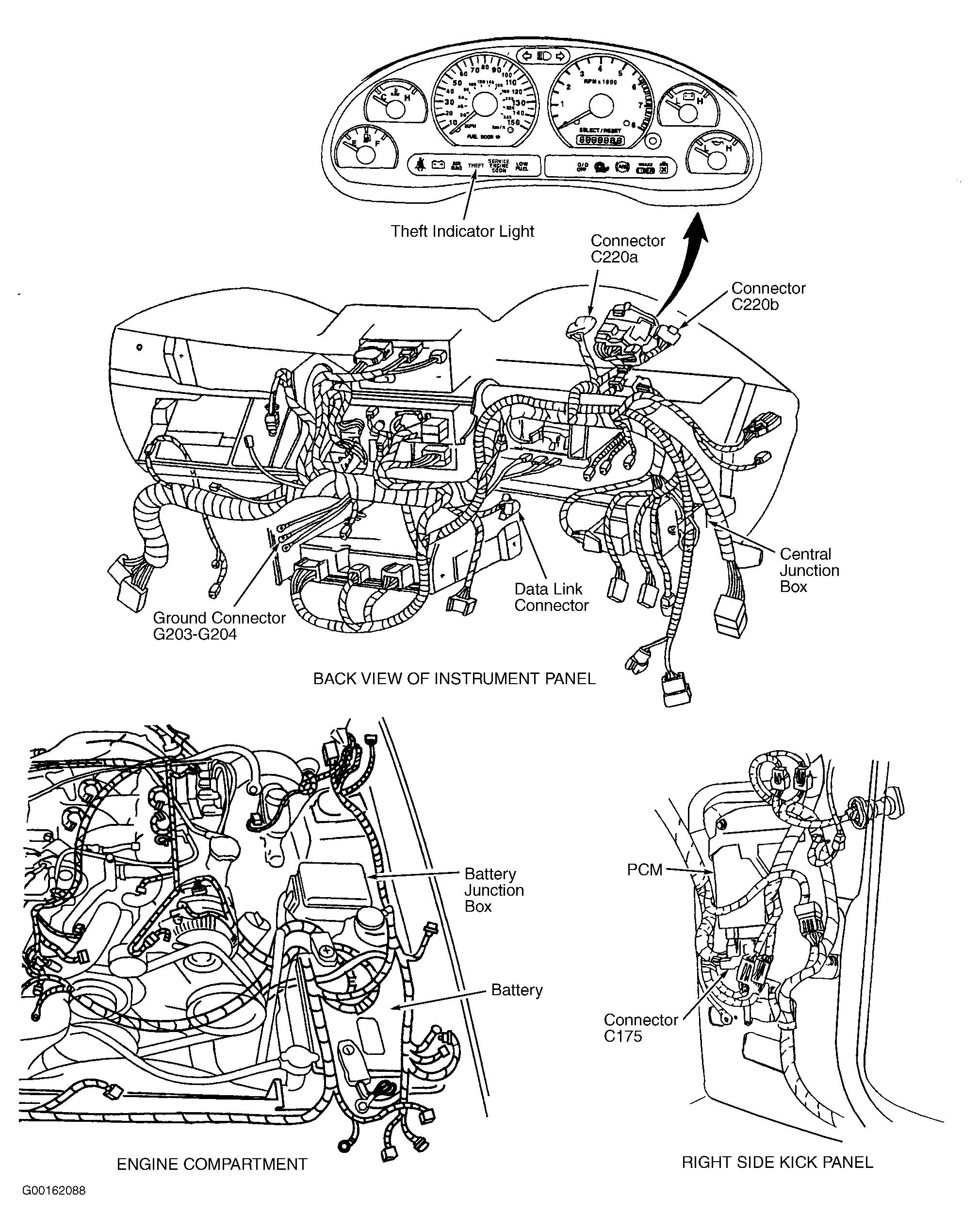 - Turn ignition switch to LOCK position. Connect Worldwide Diagnostic System (WDS) tester or New Generation Star (NGS) tester to Data Link Connector (DLC). See Figure. DLC is located under instrument panel between steering column and radio. See Figure. If NGS tester is used, insert Ford Service Function (FSF) card VERSION 6.0 or higher. Using NEW unprogrammed ignition key, turn ignition switch to RUN position and go to next step.