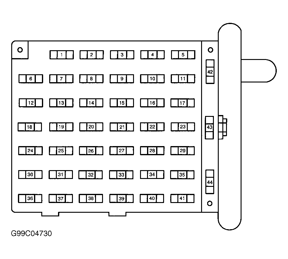 - Ensure fuses No. 32 and 39 are installed. Turn ignition switch to LOCK position. Disconnect Generic Electronic Module (GEM) 4-pin harness connector C201b. See Fig 2. GEM is located behind left side of instrument panel, next to CJB. See Figure. Measure voltage between ground and GEM harness connector C201b terminal No. 1 (White/Yellow wire). If battery voltage exists, go to next step. If battery voltage does not exist, repair open circuit in White/Yellow wire between GEM and fuse No. 39. For POWER DISTRIBUTION circuit identification, see WIRING DIAGRAMS . After repair, test system for normal operation.