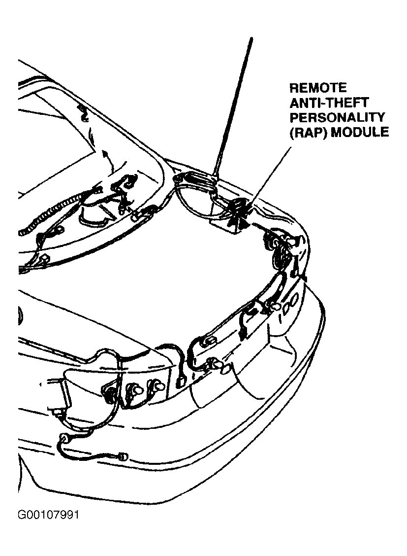 NOTE: Remote Anti-Theft Personality (RAP) module is located in luggage compartment, behind right trim panel. See Figure.