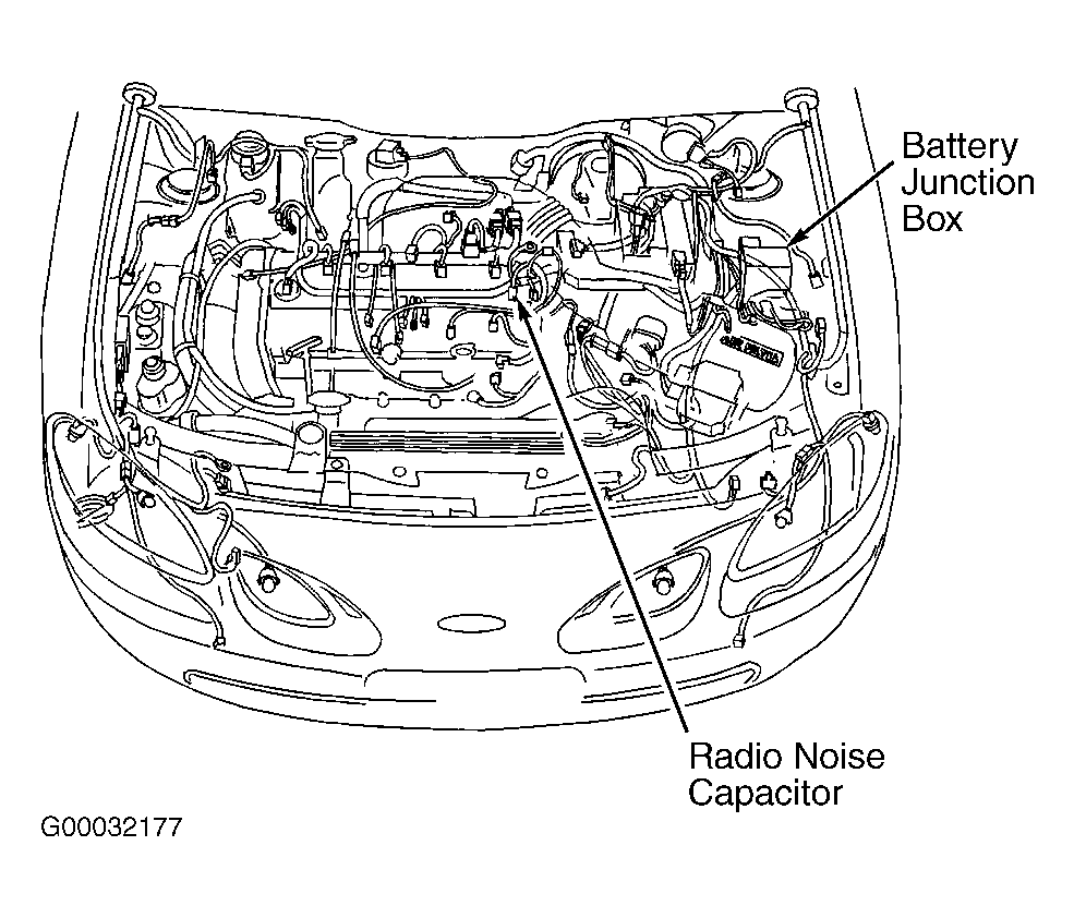Fig 1: Locating Battery Junction Box & Radio Noise Capacitor (ZX2 Shown; Sedan Is Similar)