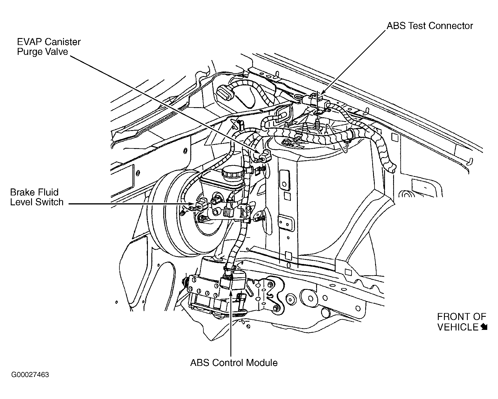 | ABS Control Module | On left rear side of engine compartment. See Figure . |