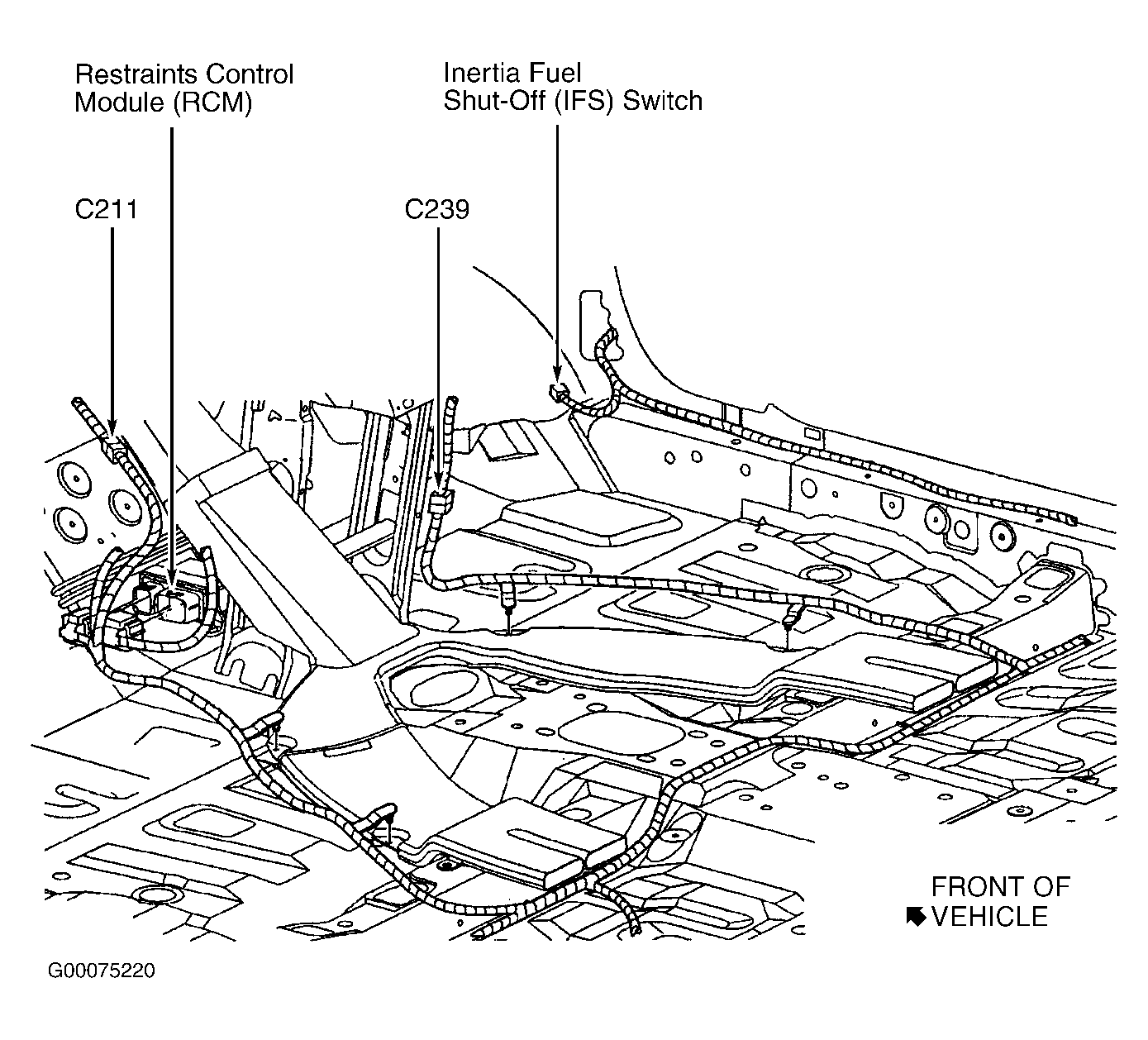 | Restraints Control Module (RCM) | Beneath lower center of dash, on transmission tunnel. See Figure . |