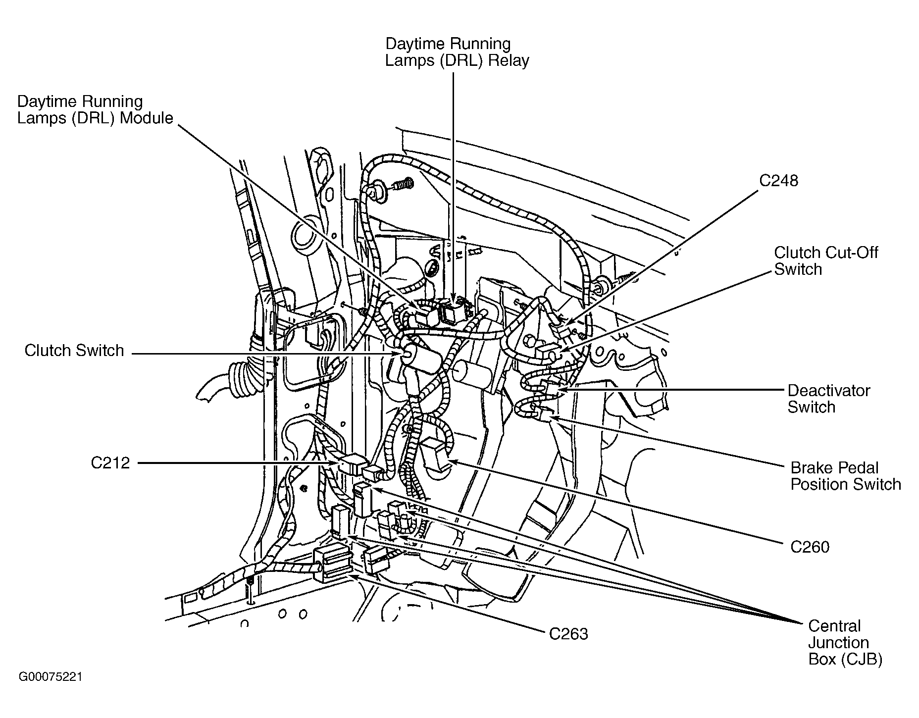 | Daytime Running Lamps (DRL) Module | Behind lower left end of dash. See Figure . |
