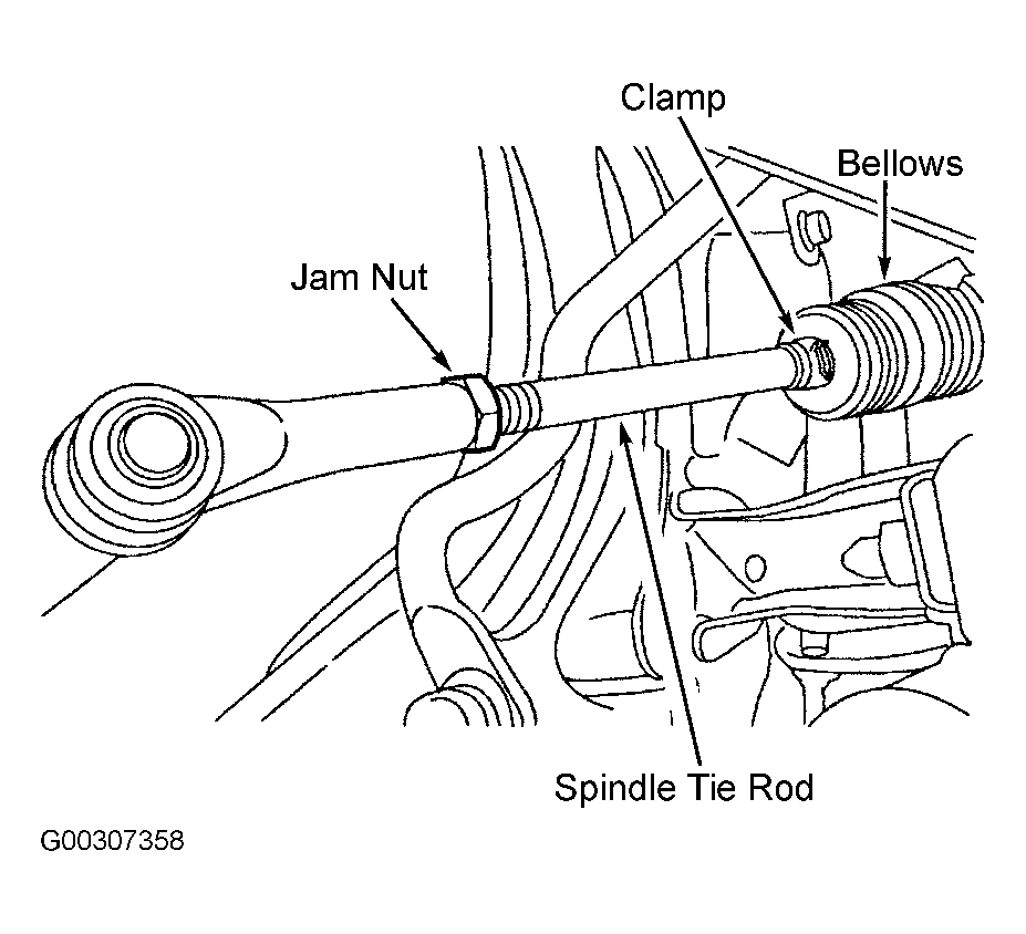 - Remove the clamps. See Fig 1 . Clean and lubricate the jam nut(s) and front wheel spindle tie rod threads. Loosen tie rod end jam nuts. Rotate the front wheel spindle tie rods.