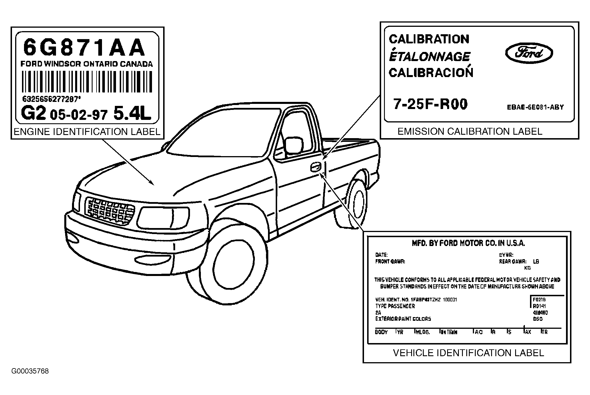 Fig 1: Identifying Vehicle Labels ("F" Series Pickup Shown; Others Are Similar)