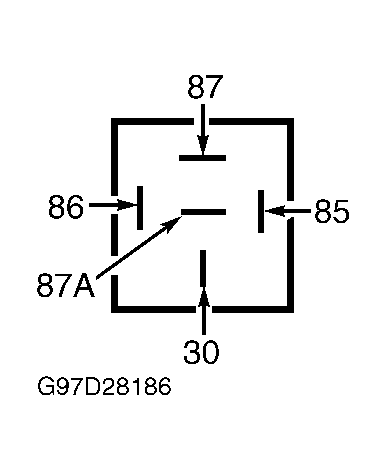 - Using a jumper wire, apply battery voltage to relay terminal No. 85. Using a second jumper wire, ground relay terminal No. 86. Continuity should now exist between relay terminals No. 30 and 87. If continuity is not as specified, replace relay. If continuity is as specified, relay is okay at this time.