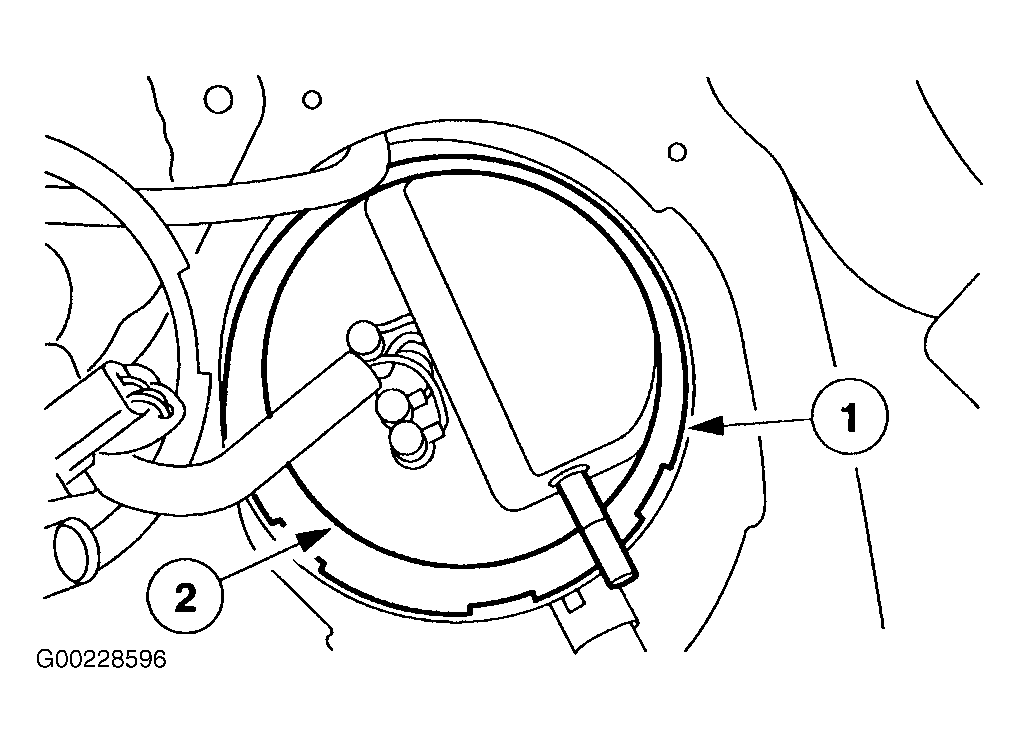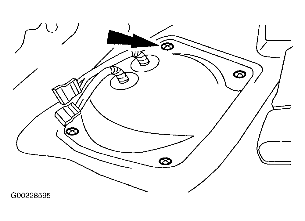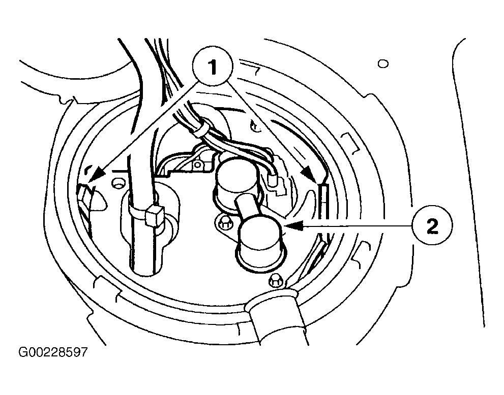 - Remove 4 screws retaining fuel pump module access cover and remove access cover. See Fig 1. Remove any dirt from around fuel pump module flange area. Disconnect fuel line from fuel pump module. See FUEL LINE CONNECTORS . Remove retainer ring (1) and open fuel pump module cover (2). See Fig 2. Push inward on locking tabs (1) and remove fuel pump module (2). See Fig 3.