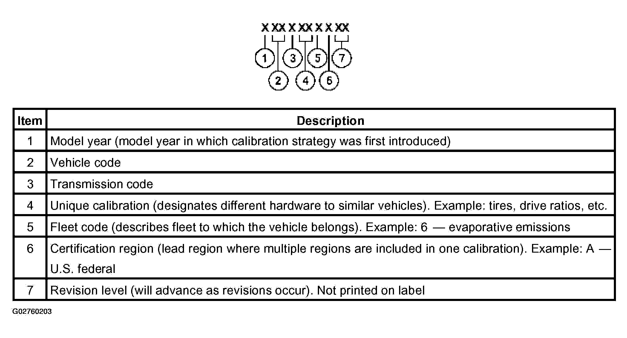 NOTE: Powertrain calibration information is limited to a maximum of five characters per line on the vehicle certification label. Because of this, calibration identification consisting of more than five characters will wrap to the second line on the VC label.